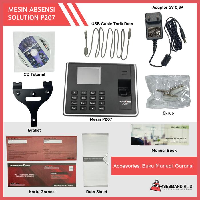 PROMO MESIN ABSENSI FINGERPRINT SOLUTION P207 INCLUDE KABEL USB1000