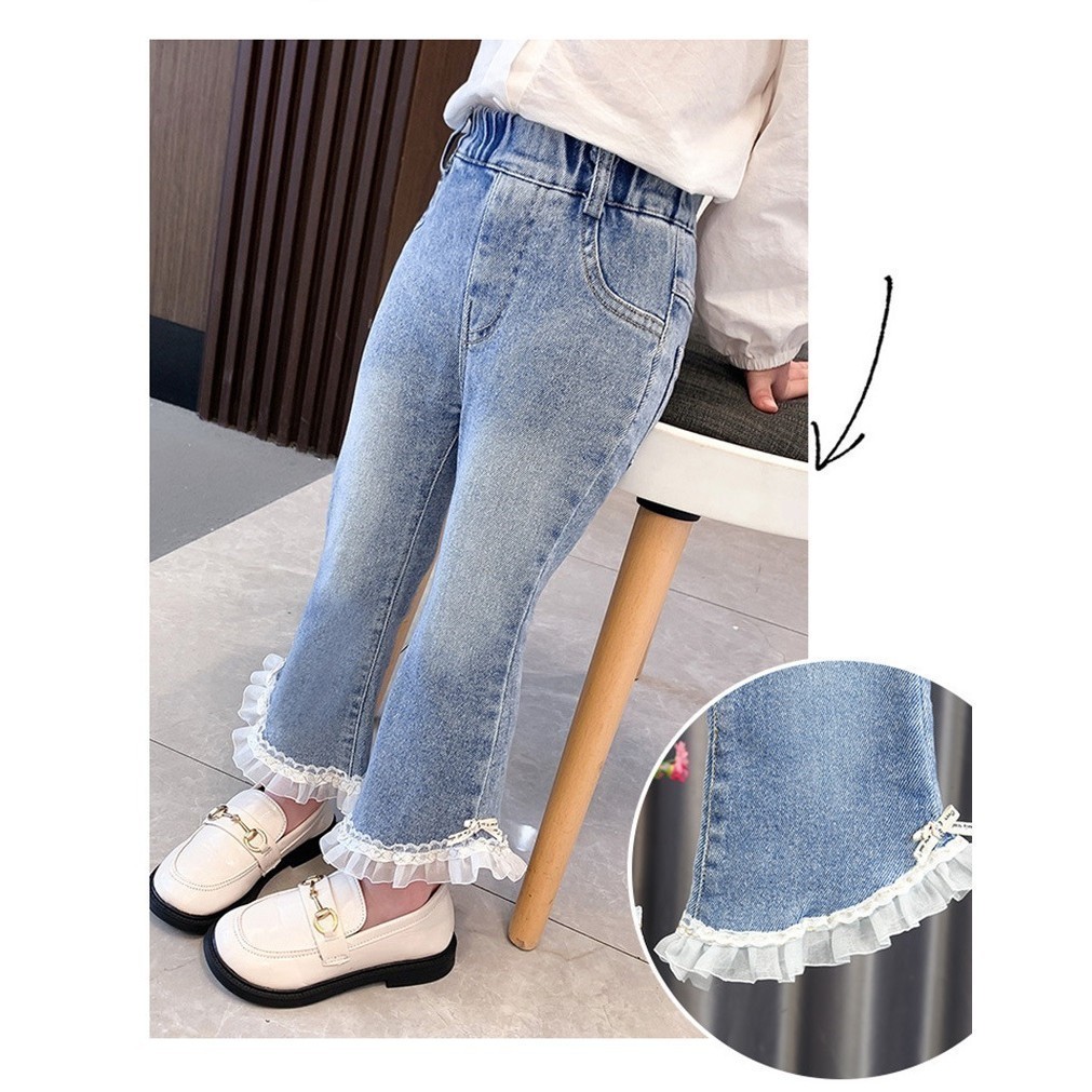 celana jeans CELANA JEANS PANAJANG ANAK PEREMPUAN BAHAN TEBAL STRECH MOTIF 3D PITA