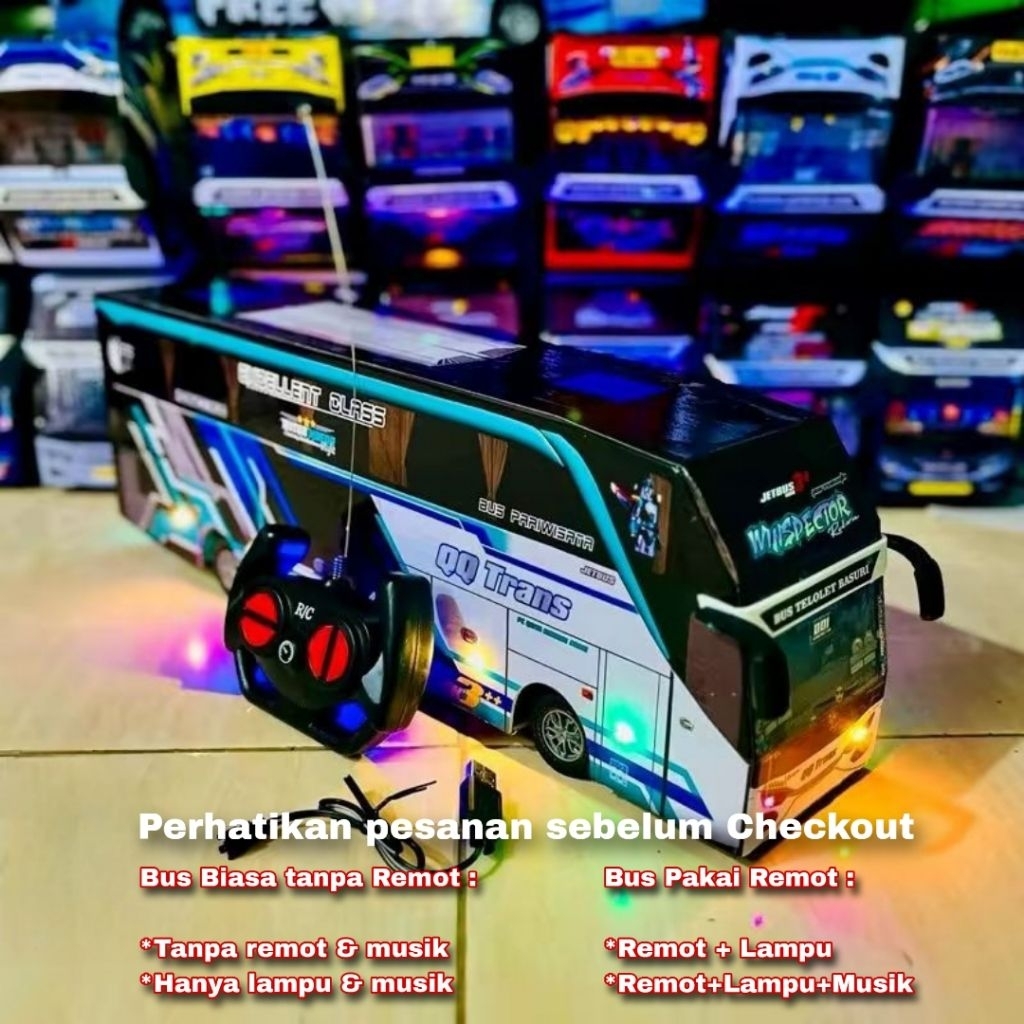 Miniatur bus telolet basuri, ( bus tanpa remot & bus pakai remot control ),bus telolet, ful lampu