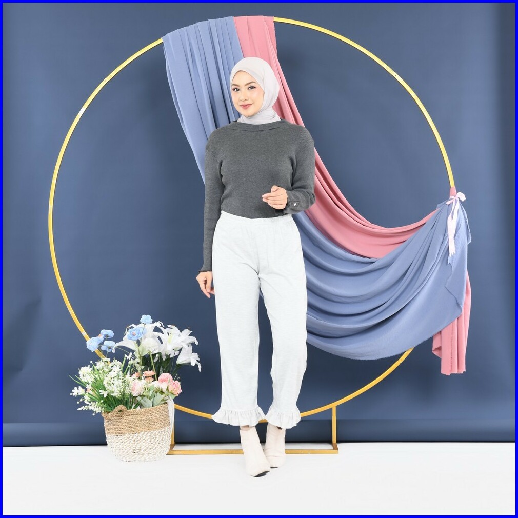 Mybamus Qila Highwaist Kulot Celana Panjang Cullote Knitted Korea Misty White M17312 R14s5