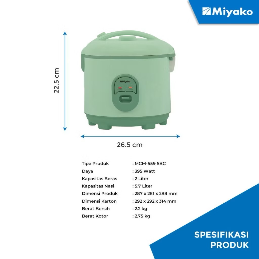 Miyako MCM-559-SBC – Magic Com 2 Liter 3in1 395 Watt Non Stick Nanoal Seafoam Green MCM559SBC