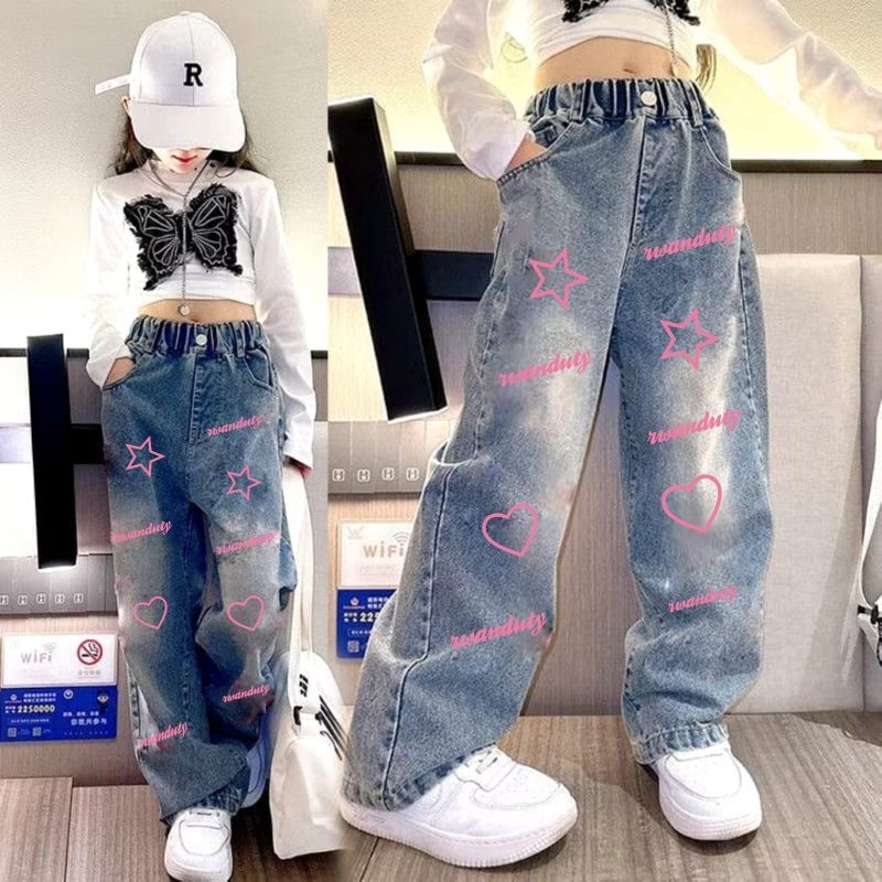 celana jeans Celana Kulot Love Jeans Anak Perempuan Usia 4-12 Tahun