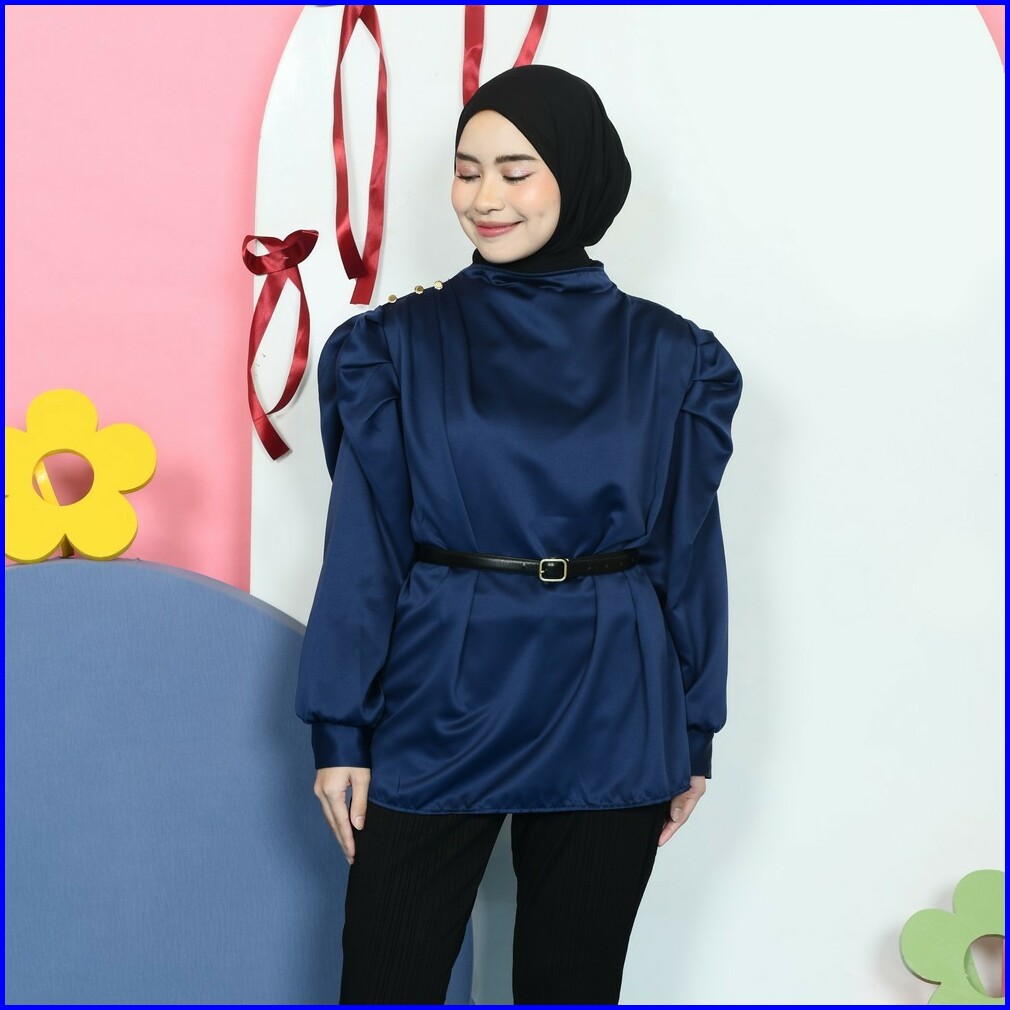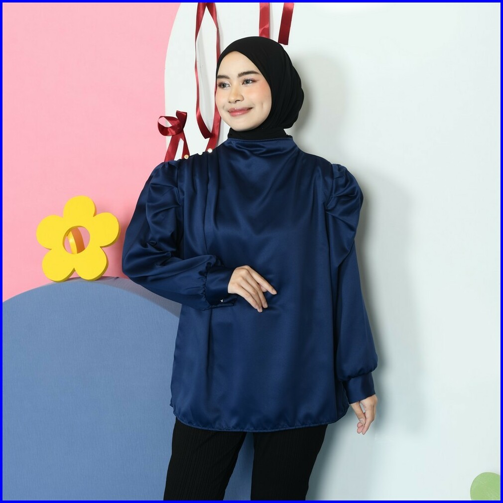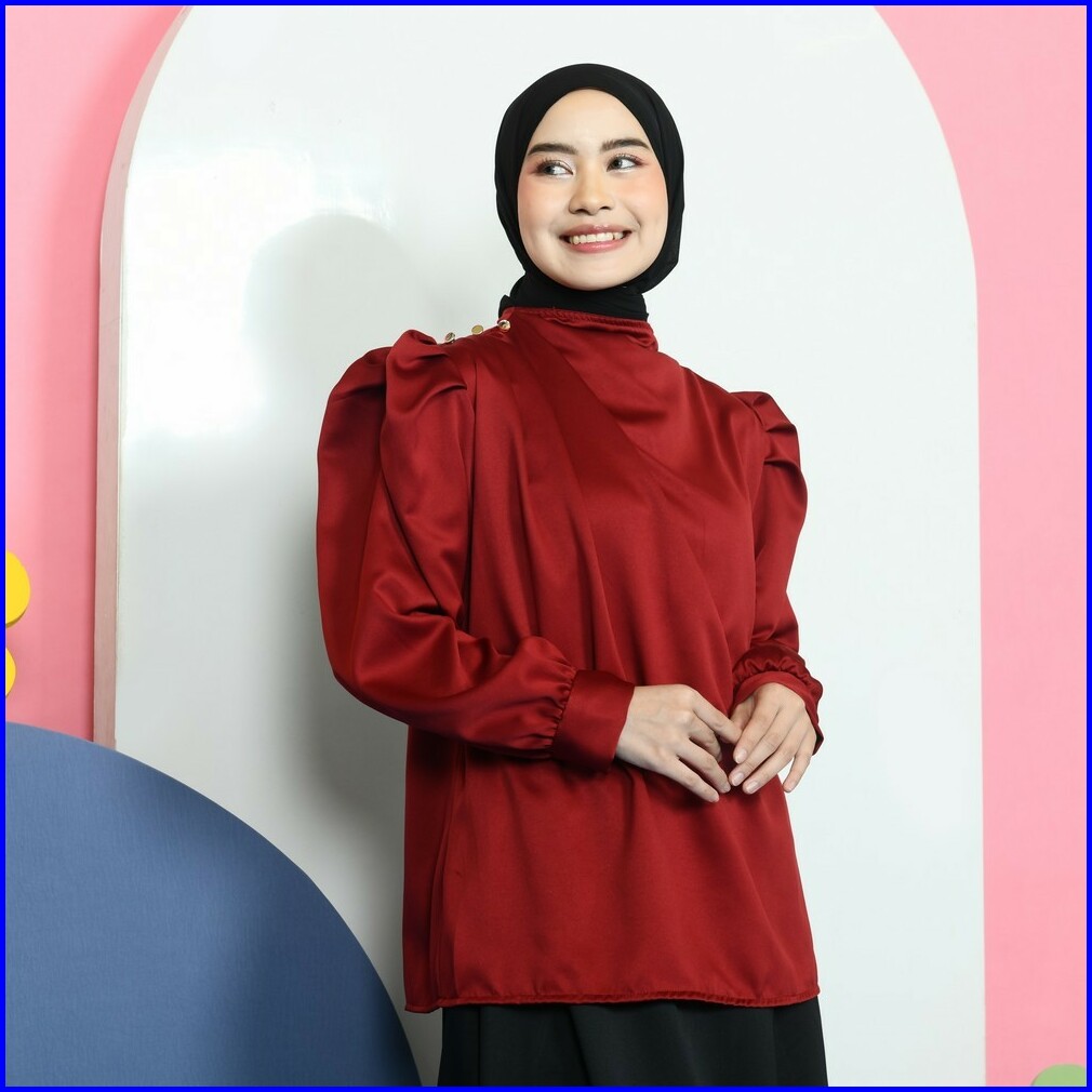 Mybamus Jena Balloon Puff Tops Atasan Kerja Blouse Bahan Satin Kondangan Kekinian