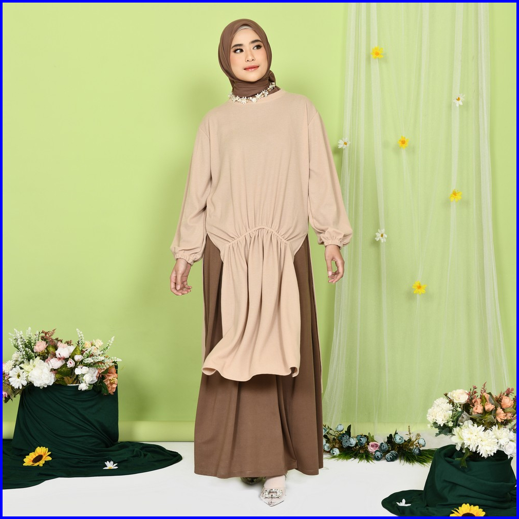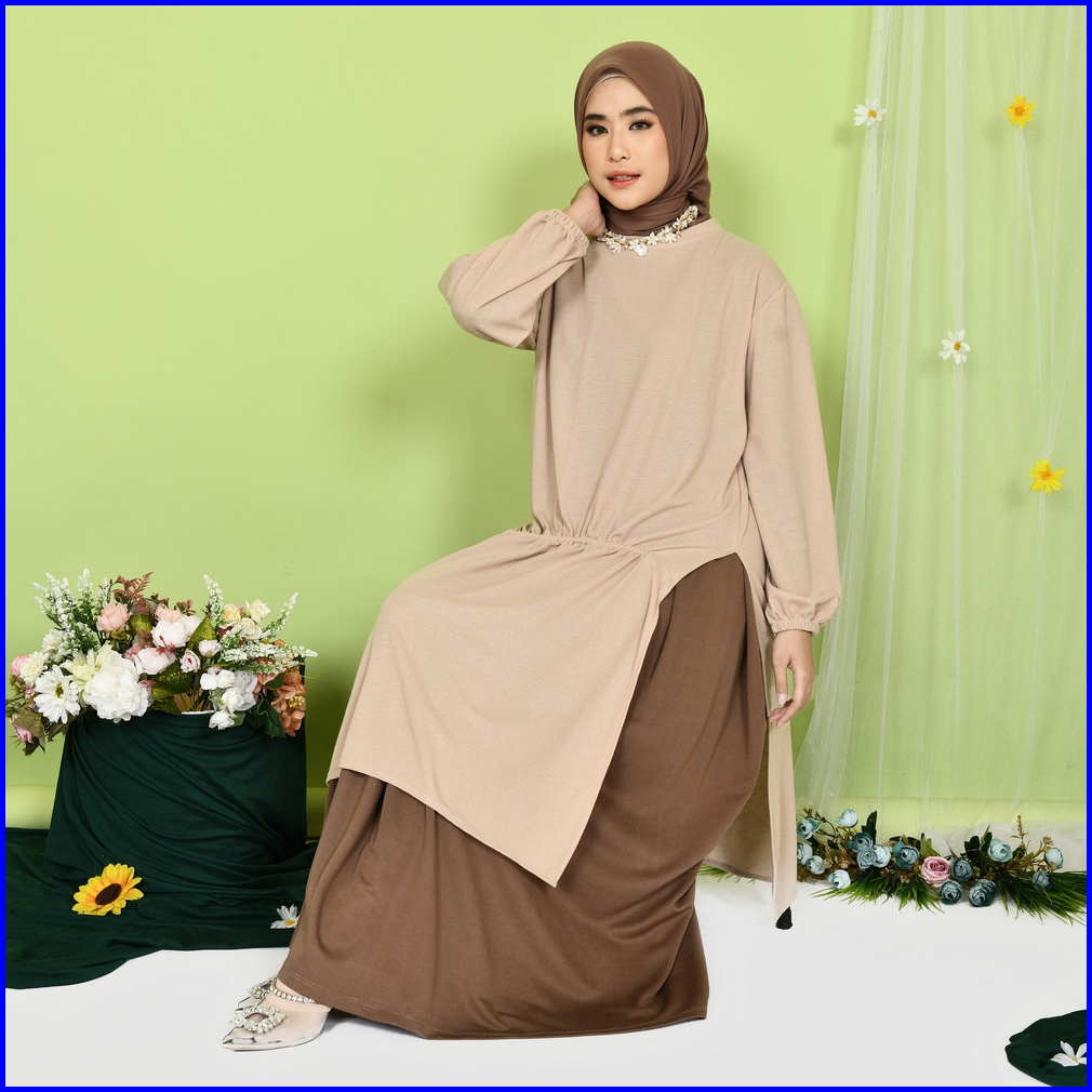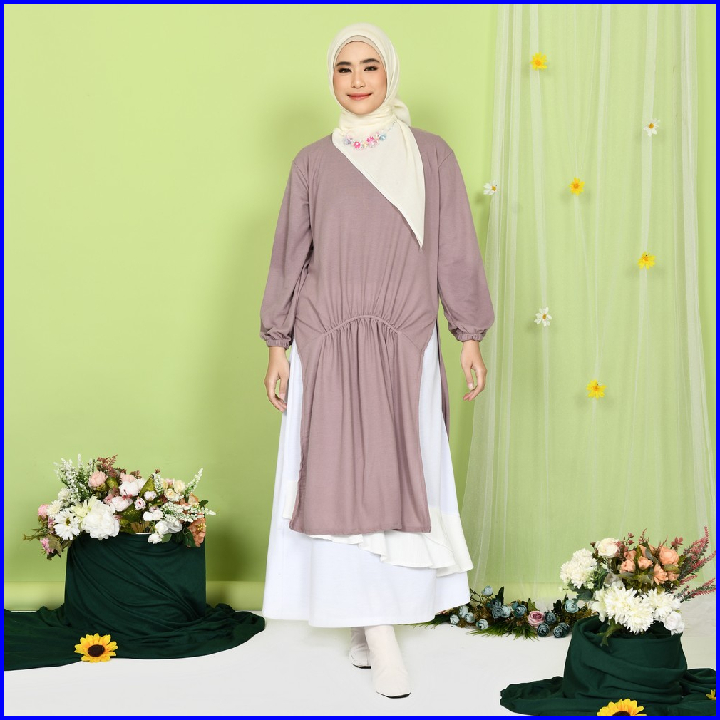 Mybamus Waffle Tunik Slit Atasan Tunik Wanita Tunik Wanita Kekinian Tunik Waffle