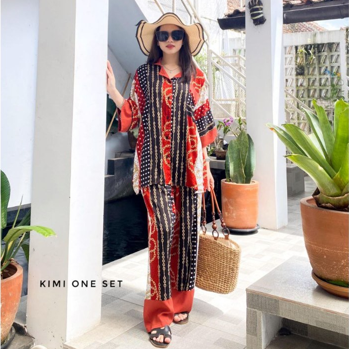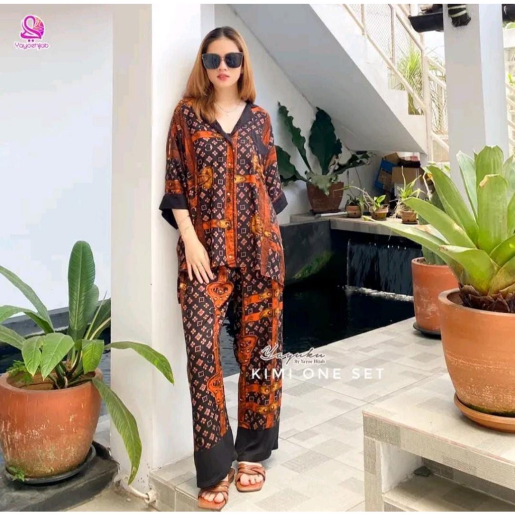 Kimi One Set Setelan Daily Wanita Motif Terkini Bahan Adem Setelan Pajamas Terbaru Daily Yayuku