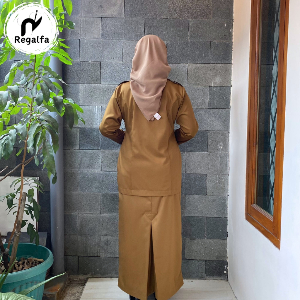 Setelan Baju Seragam PDH Khaki Tua PEMDA PNS Wanita Terbaru Model Kerah Rebah TERBARU 2024