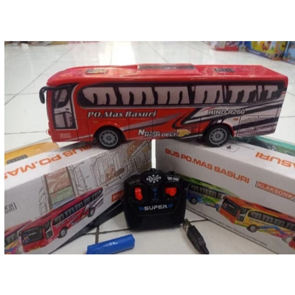 WTBS Mainan Anak Murah Mobil RC Mobil Remote Control Bus PO MAS BASURI ( Nyala Lampu Led , Skala 1:32 ) Baterai Cas