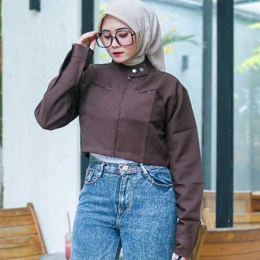 [PROMO MURAH] Jaket Crop Wanita Zipper Lengan Panjang Atasan Crop Wanita Bahan Semi Woll Premium