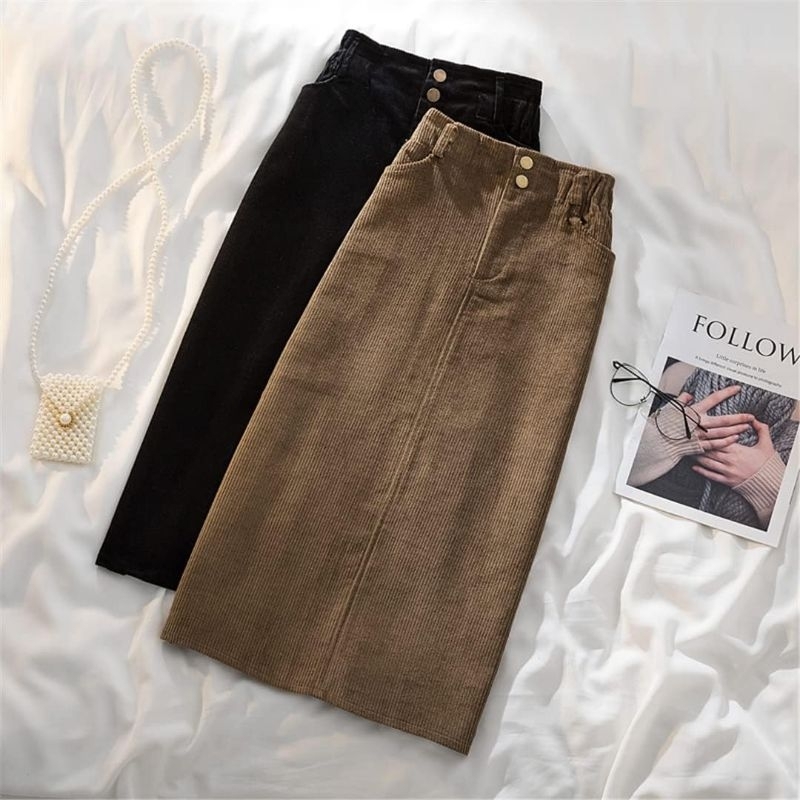 Rok Span Wanita Kekinian Korean Style Warna Hitam Bahan Corduroy