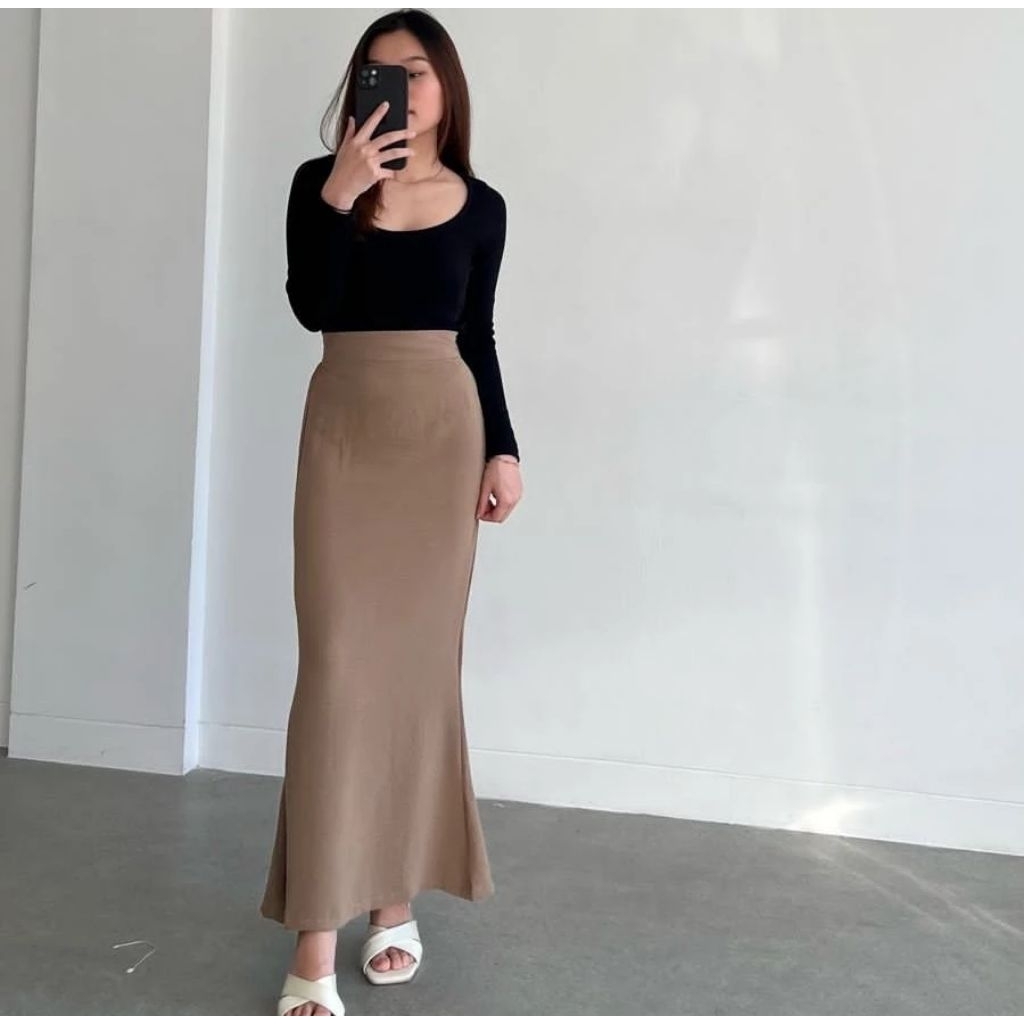 Lunar Mermaid Skirt - Mermaid Skirt - Rok Flare Wanita - Rok Mermaid Basic Polos - Mermaid Maxi Skirt Rok Panjang Wanita