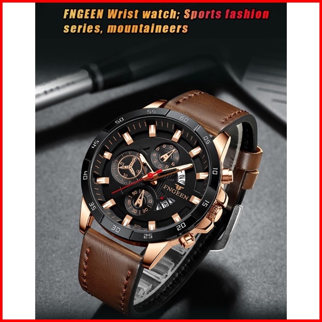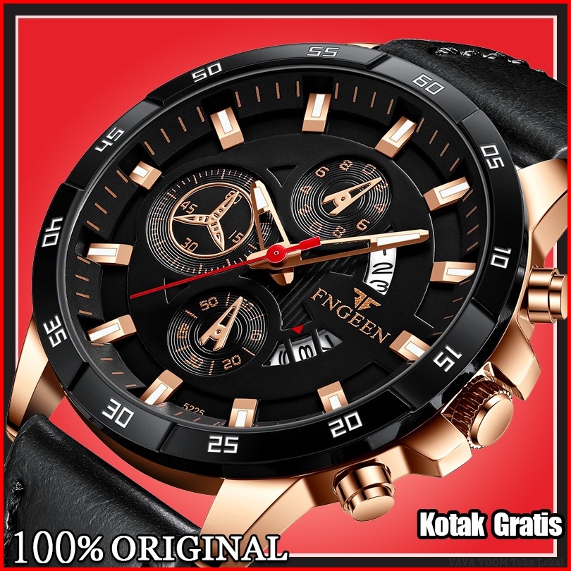 Jam Tangan Pria Sporty Kulit Original Fngeen 5225 Fashion Anti Karat Analog Mewah Kalender Stainless