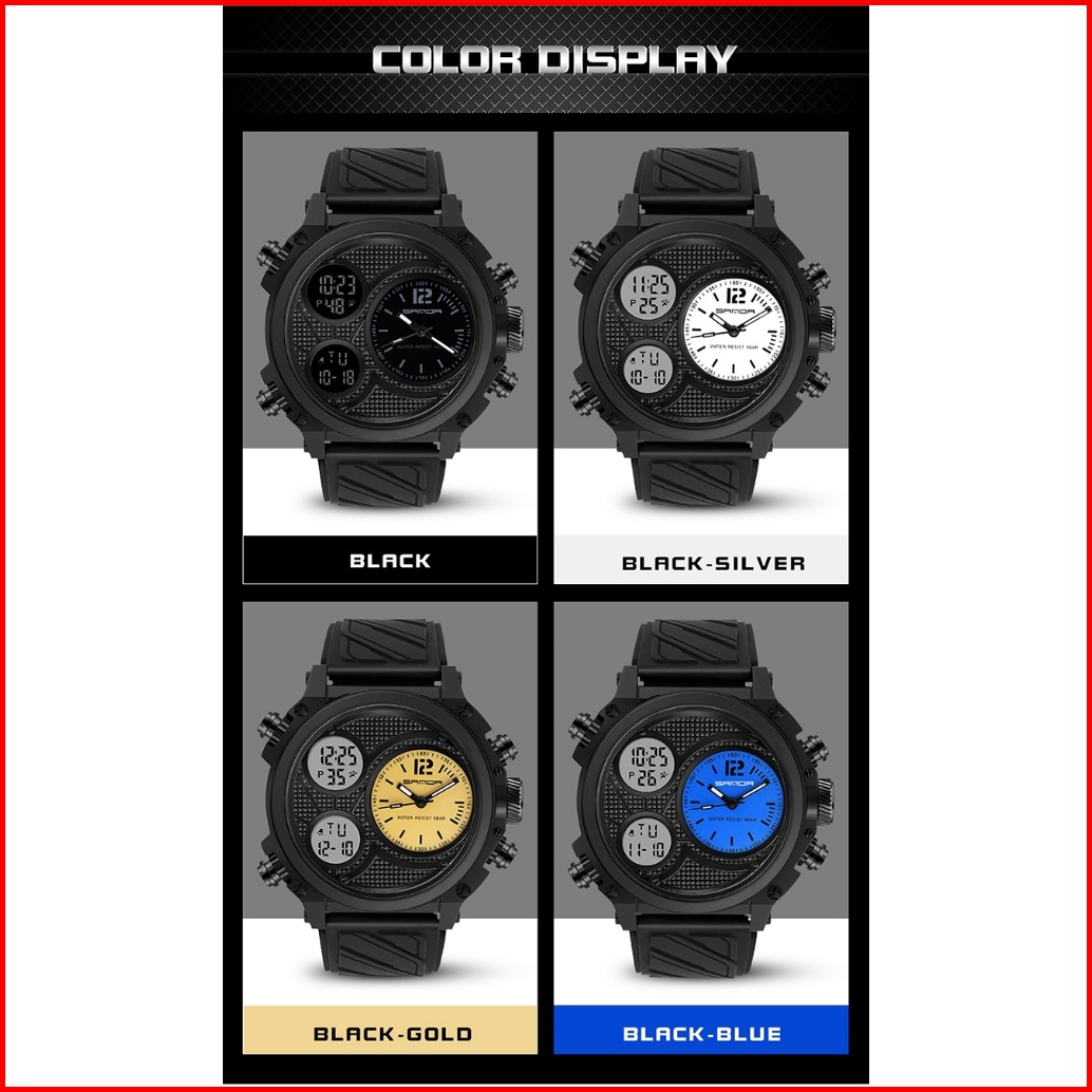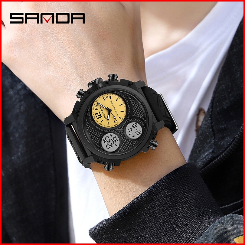 Sanda 3002 Jam Tangan Pria Bermerek Mewah Fashion Multifungsi Tampilan Ganda Olahraga Tahan Air Digital
