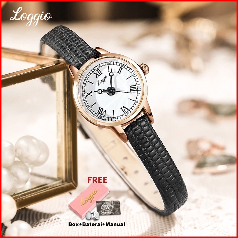 Loggio Jam Tangan Wanita Korea Antik Panggilan Original Anti Air Tali Kulit Jam Tangan Cewek