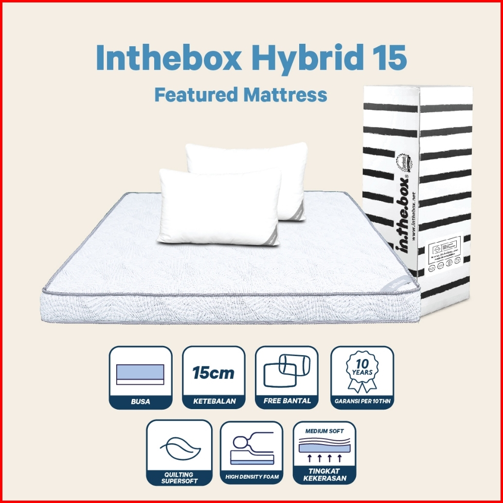 Kasur Busa Berkualitas In The Box Hybrid 15 - Free Bantal Ukuran 90x200 100x200 120x200 140x200 160x200 180x200 200x200