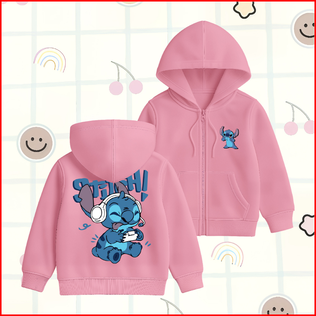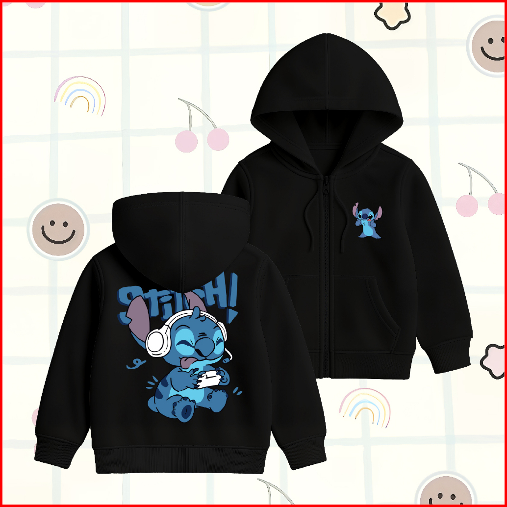 Wgud S Kids Hoodie Zipper Anak Stitch Gaming Umur 4-15 Tahun Laki-laki Perempuan