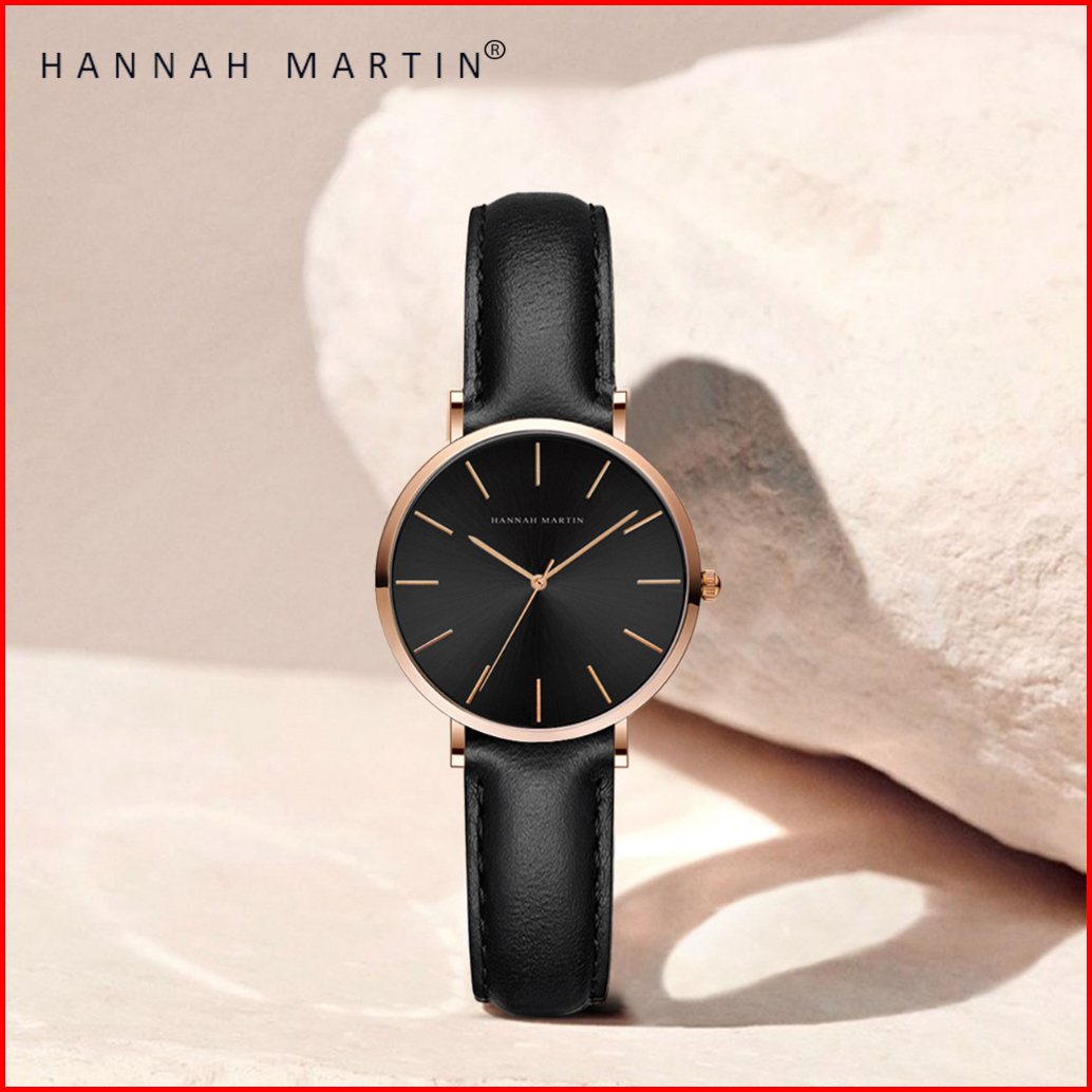 Hannah Martin Jam Tangan Wanita Sangat Tipis 100 Asli Modis Kecil Sederhana Kuarsa Jam Tangan Wanita Kulit Tahan Air Jam