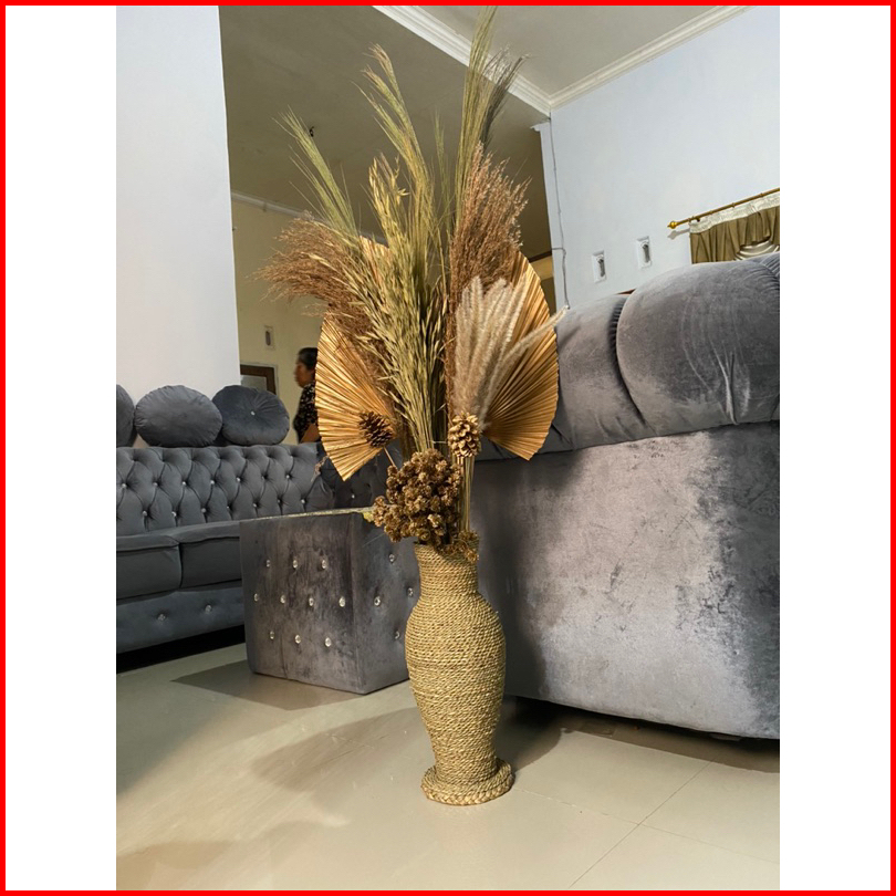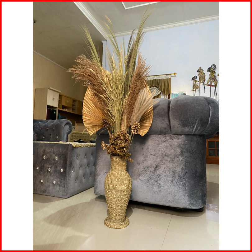 Paket Lengkap Bunga Dan Pot Daun Palem Kering Bunga Kering Pampas Rayung Dekorasi Rustic Dekorasi Rumah