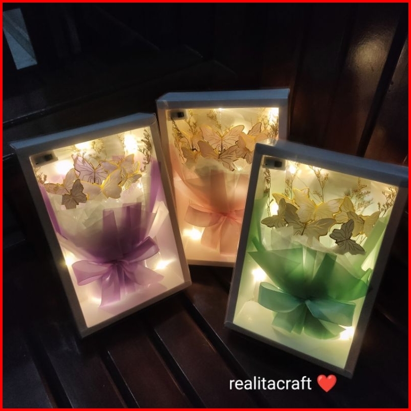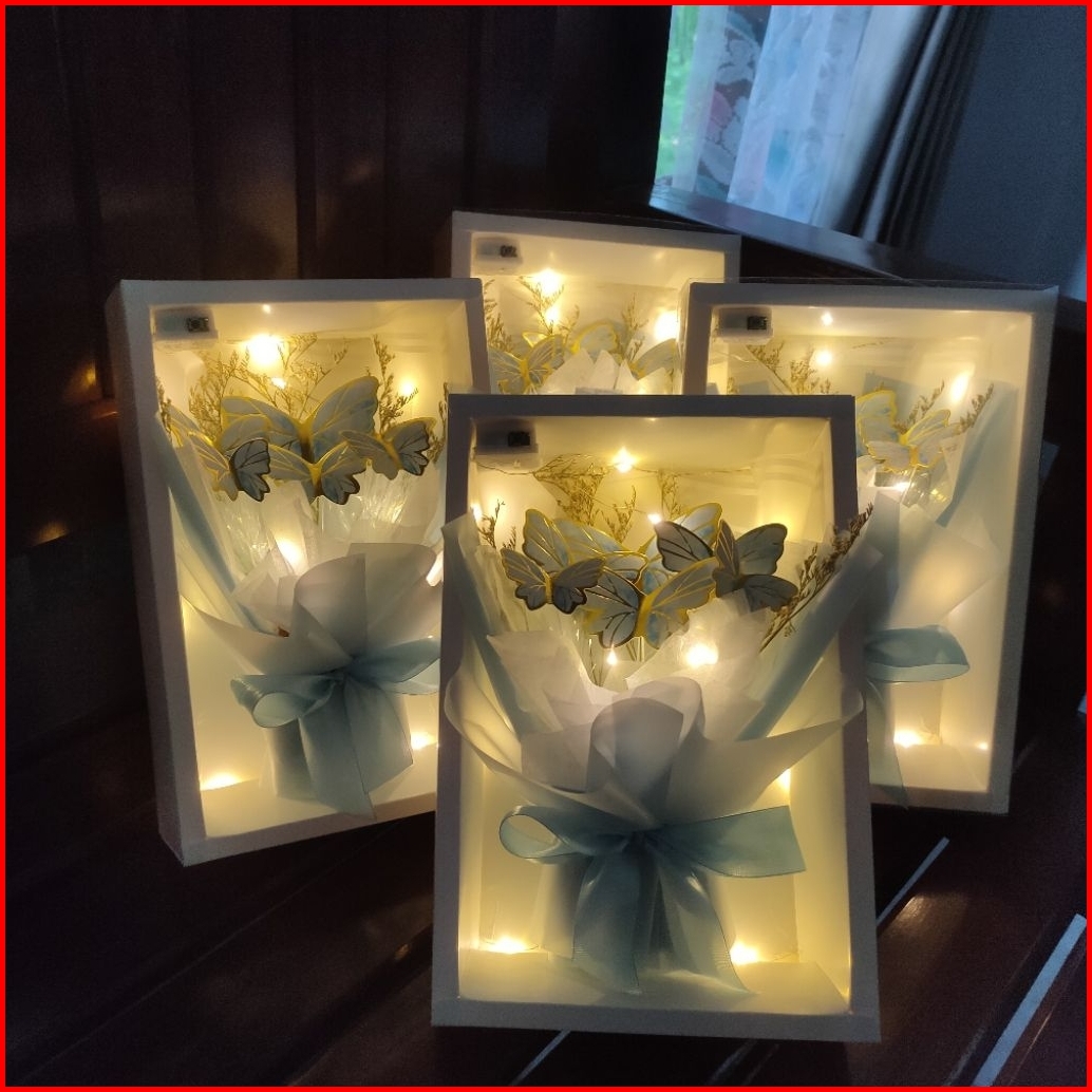 Hampers Gift Box Souvenir Buket Bunga Kupu-kupu Led