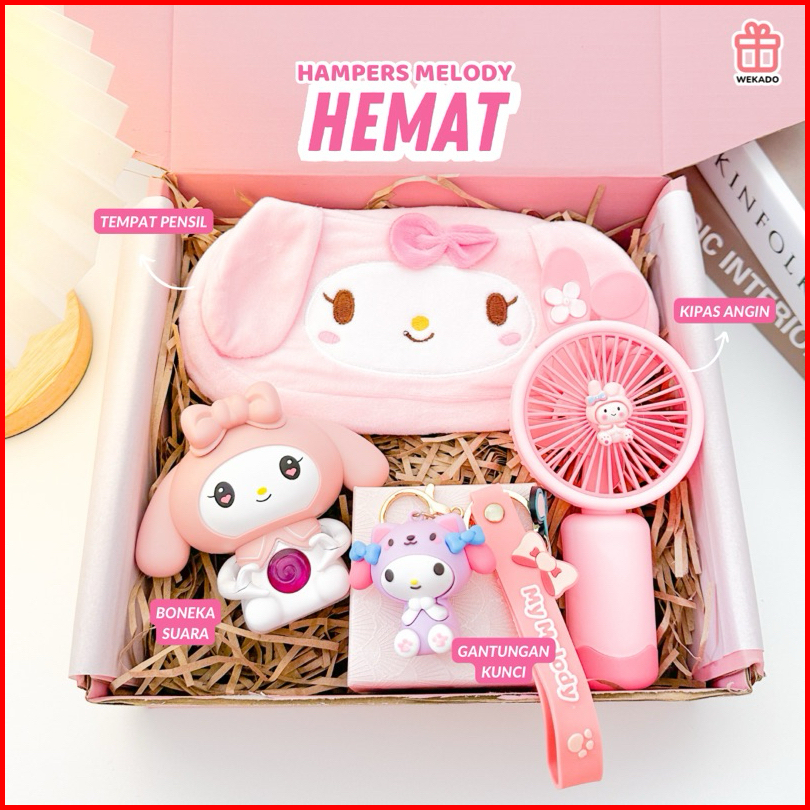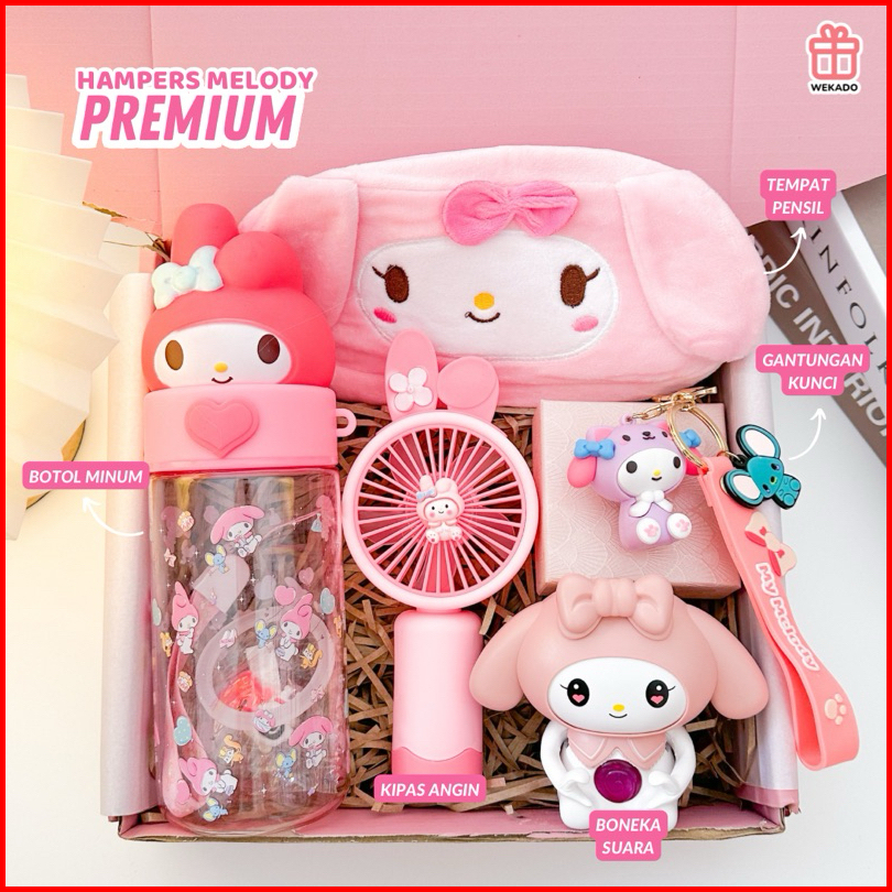 My Melody Gift Box Special Sanrio Karakter Hampers Kado Kartun Lucu Hadiah Tas Botol Kipas Ganci Pink Edition