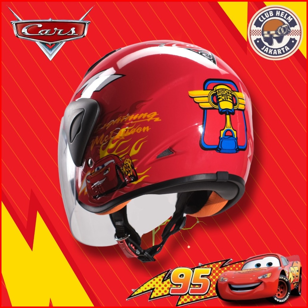 Helm Anak Sni Premium Cowo Laki Laki Remaja Karakter Cars Mc Queen Mobil Mobilan 2 3 4 5 6 7 8 Tahun
