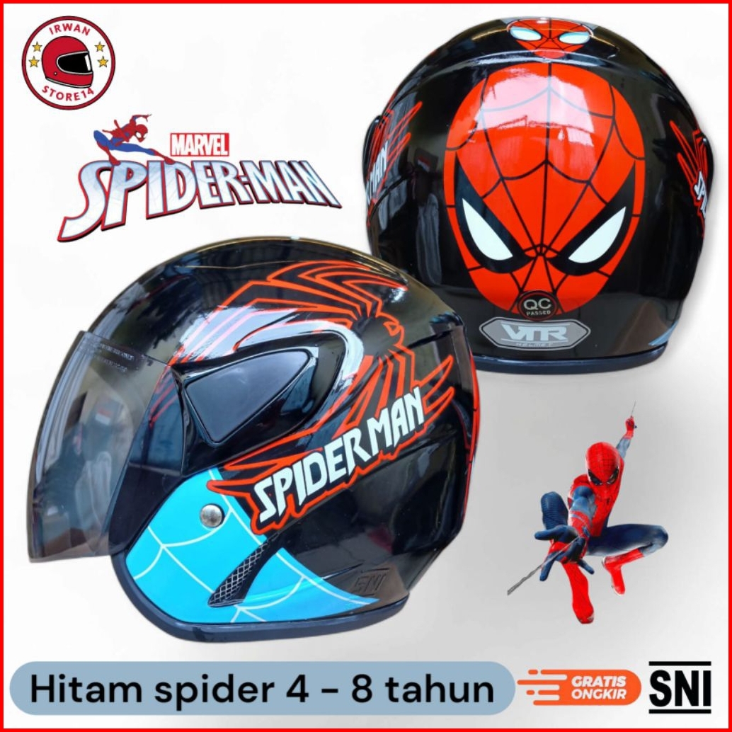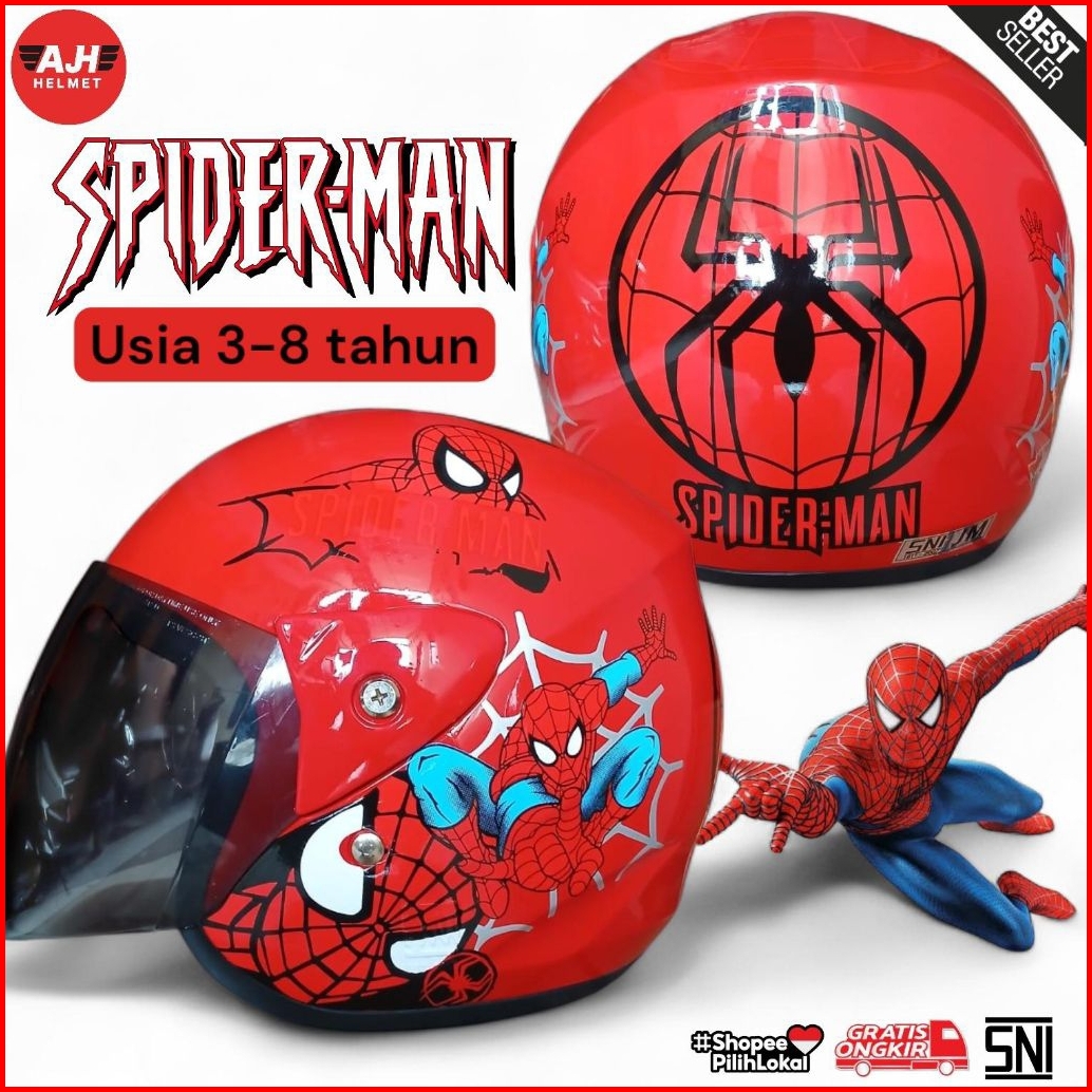 Helm Anak Spider Man 4 5 6 7 8tahun Lingkar Kepala Max 55 Cm Sni