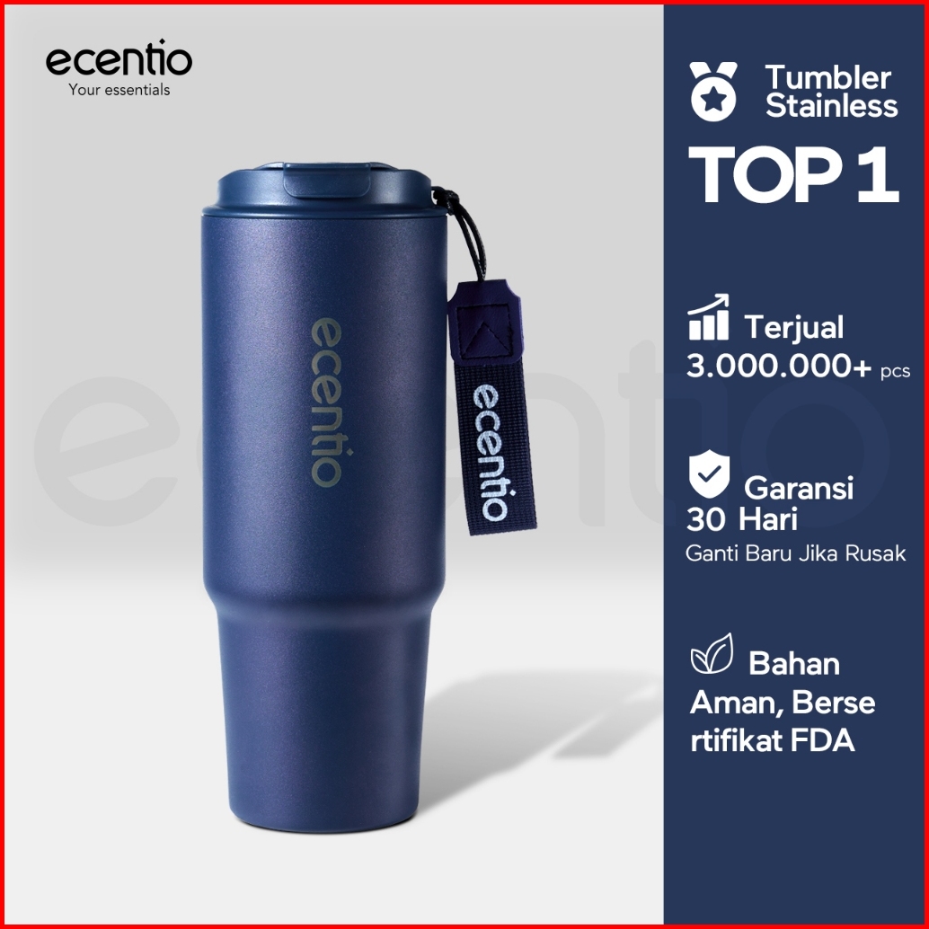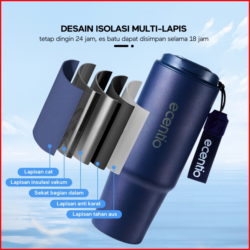 Ecentio Tumbler Stainless Vacuum 900ml Tali Rajut Portable Thermos Botol Minum Besar Mulut Gelas Untuk Minum Langsung Co