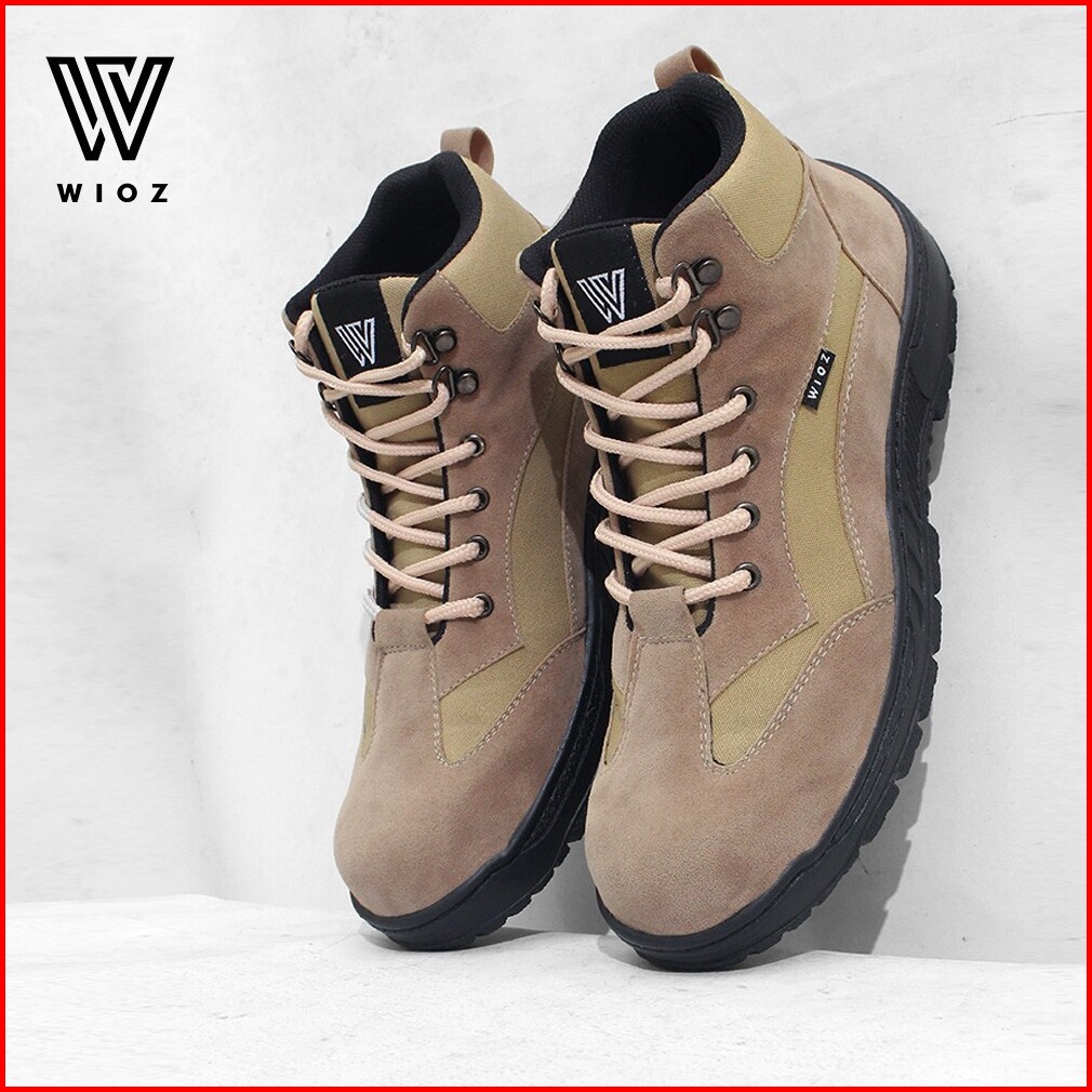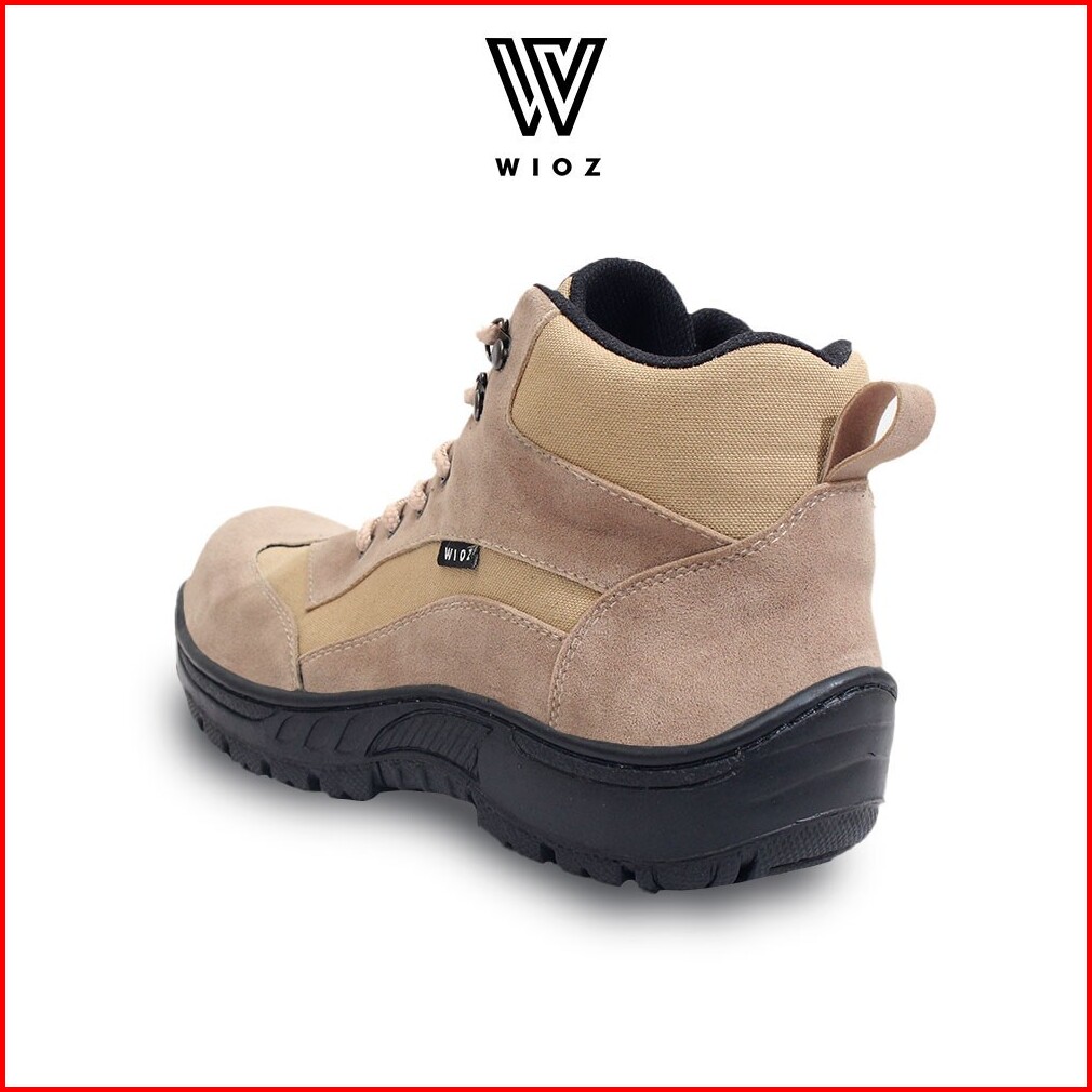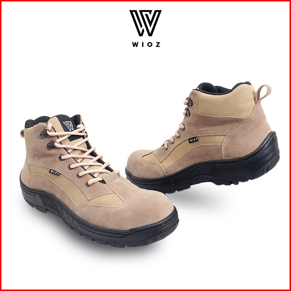Wioz Sepatu Boot Ujung Besi Pria W 55151 Sepatu Safety Boots Outdoor Motor Touring Lapangan Bahan Suede Warna Krem