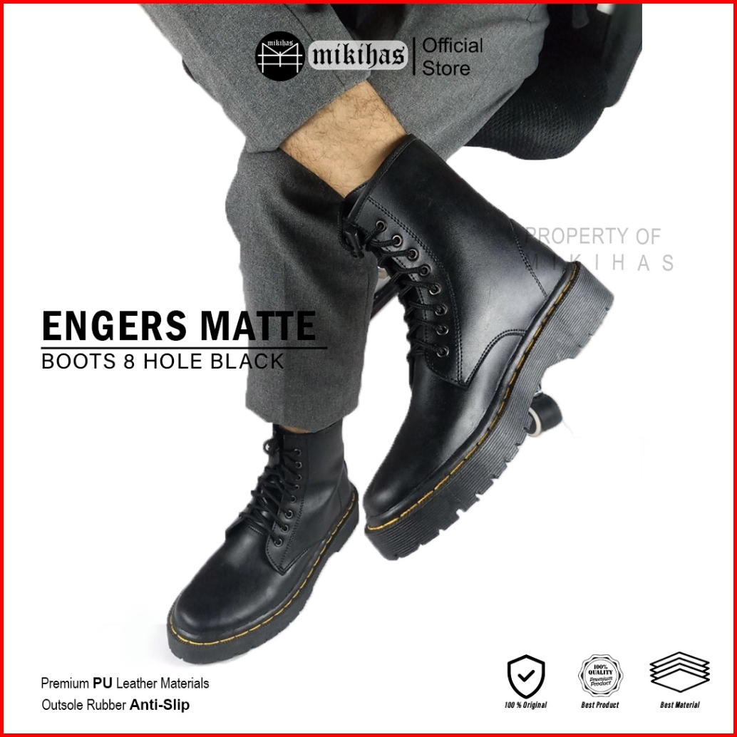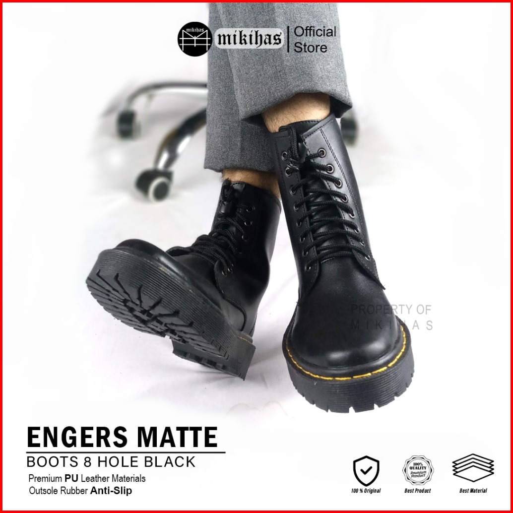 Mikihas - Sepatu Boots Pria 8 Hole Black Engers Matte