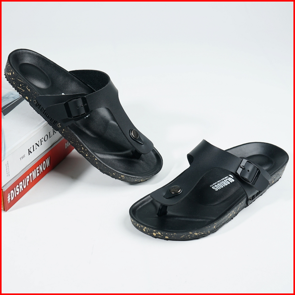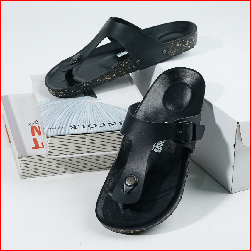 Glorious - Zero Full Black Sandal Kulit Jepit Pria Wanita Formal Kasual Santai Distro Nyaman Empuk
