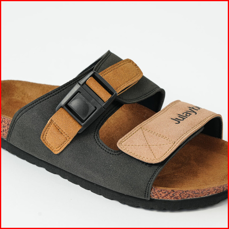 Julaybib Hamra - Black Sendal Slippers Casual Original Sandal Slip Pria Wanita Vegan Leather