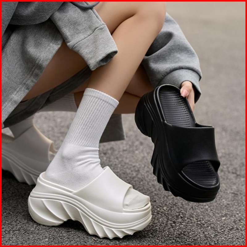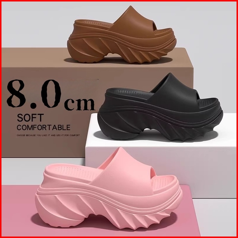 Sandal Hak Tinggi Sol Tebal 8cm Wanita Meningkatkan Sandal Selebriti Internet Eva Kasual Wanita