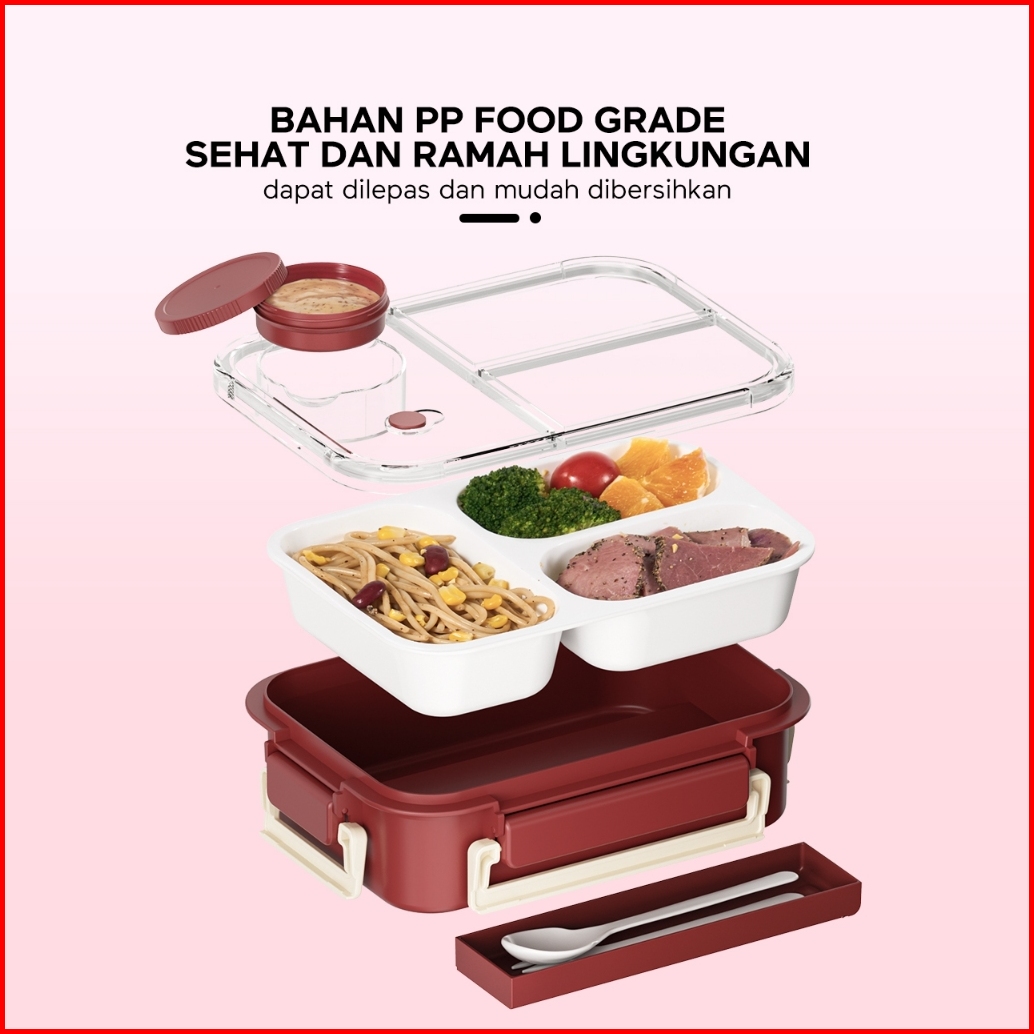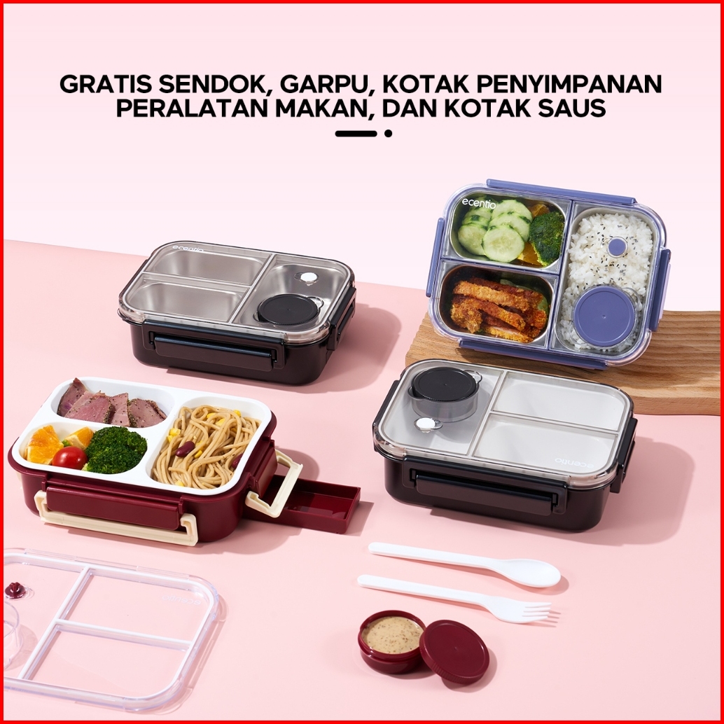 2.0 Anti Tumpah Seriecentio Lunch Box 800ml Food Grade Plastic Stainless Pengisian Dan Pemanasan Air 3 Sekat Kotak Bekal