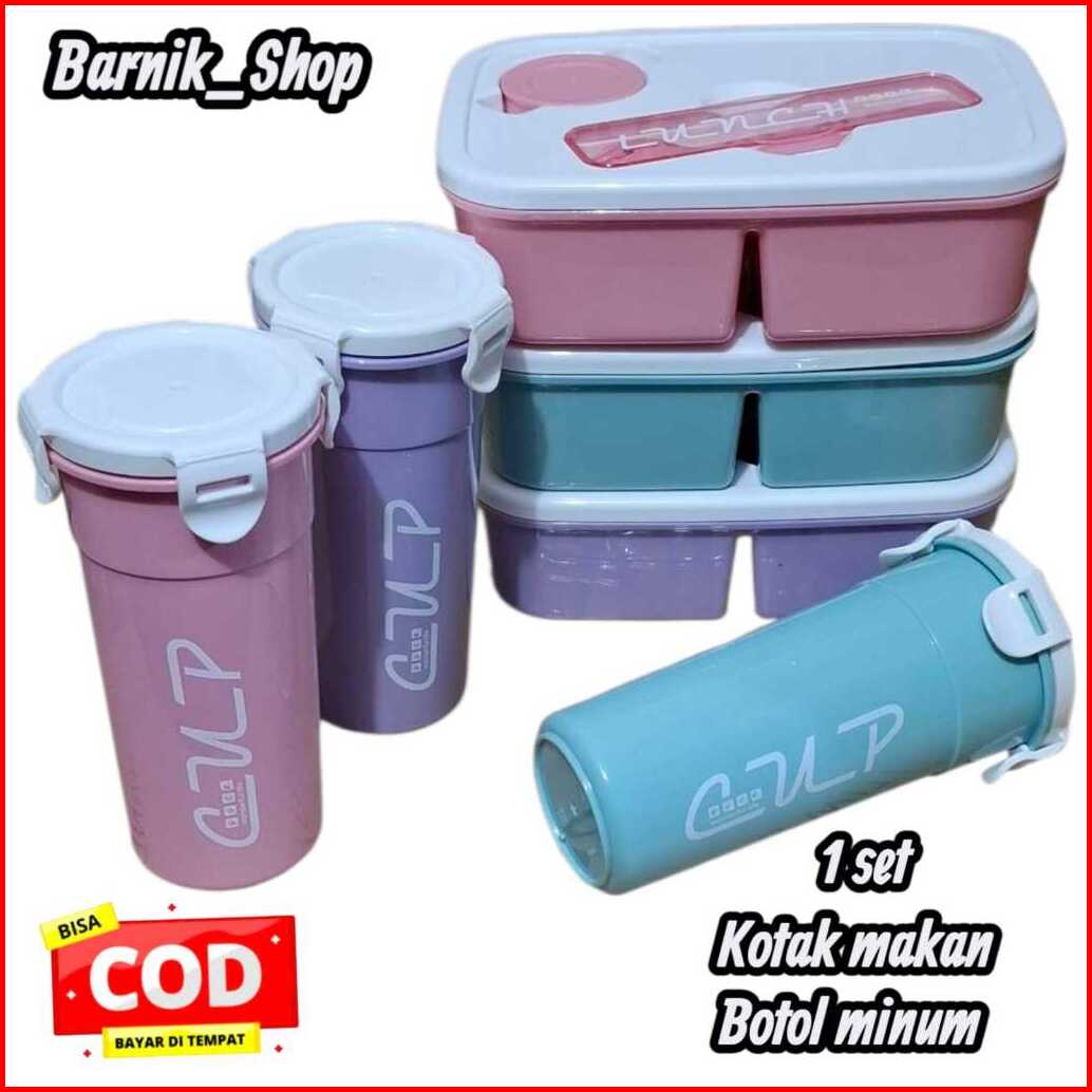 Kotak Makan Botol Set Tempat Makan Portable Dan Botol Minum Lunch Box Bpa Free 1set Kotak Makan Botol