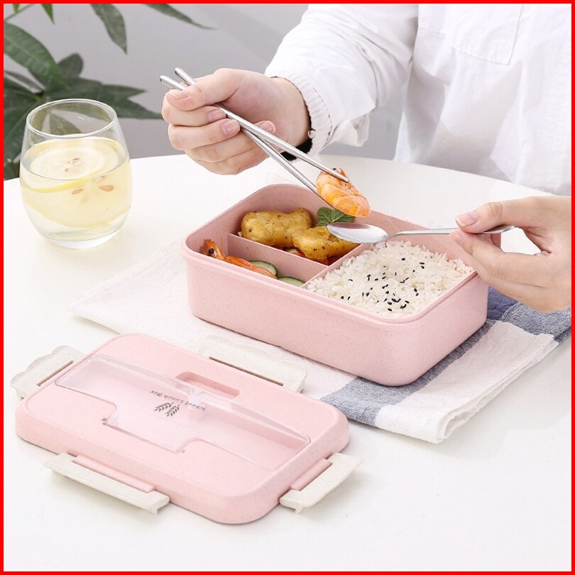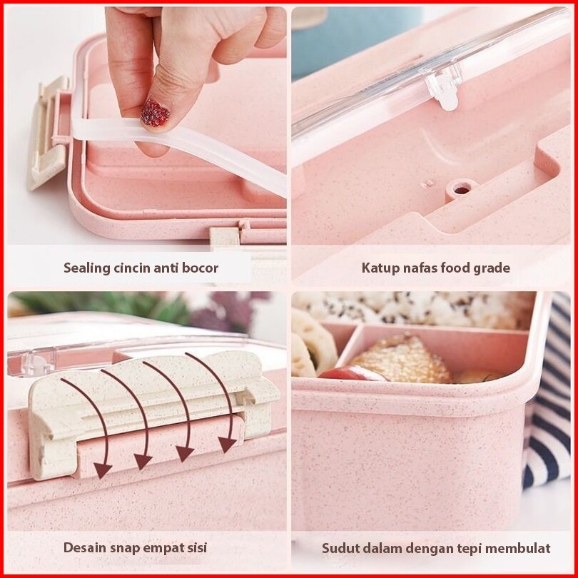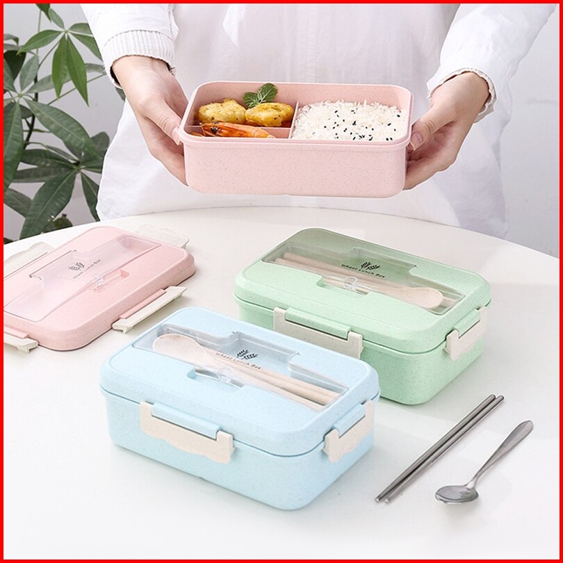 Cocoo- Lunch Box 3 Warna Pp Jerami Gandum 1000 Ml Lunch Box With Free Sendok Bpa Vs-1
