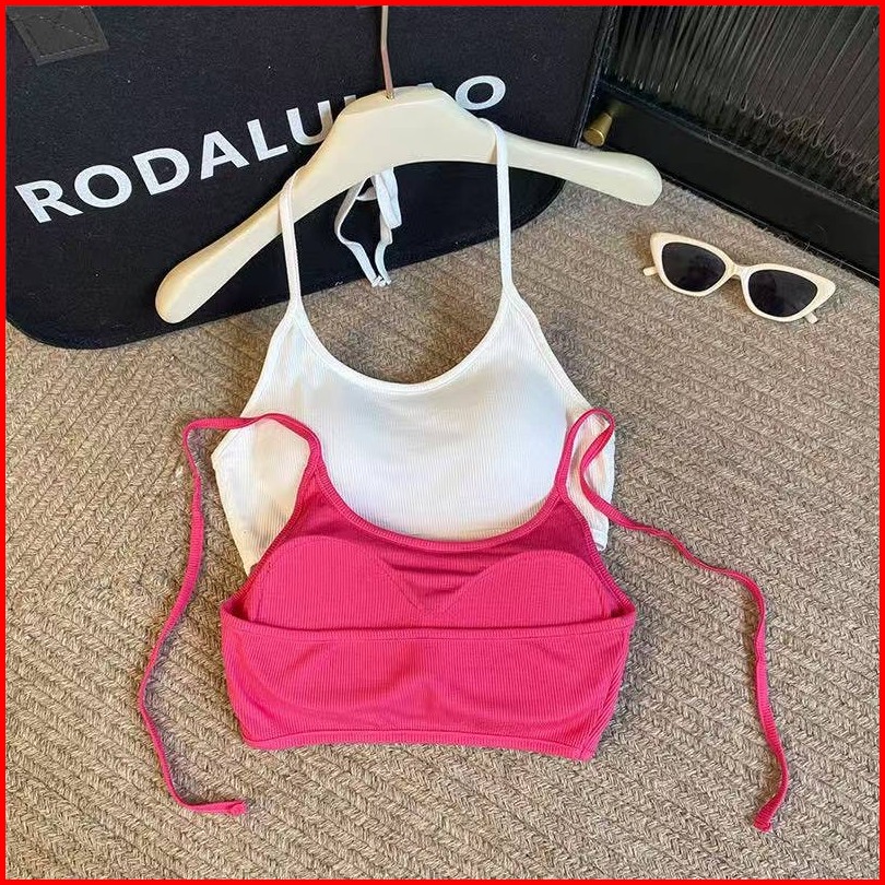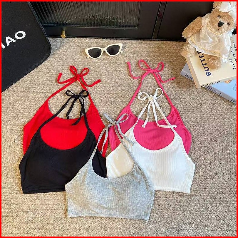 Miss Tank Top Halter Wanita Sexy Baru Dengan Bra Pad Gaya Liburan Manis Seksi Atasan Dalaman