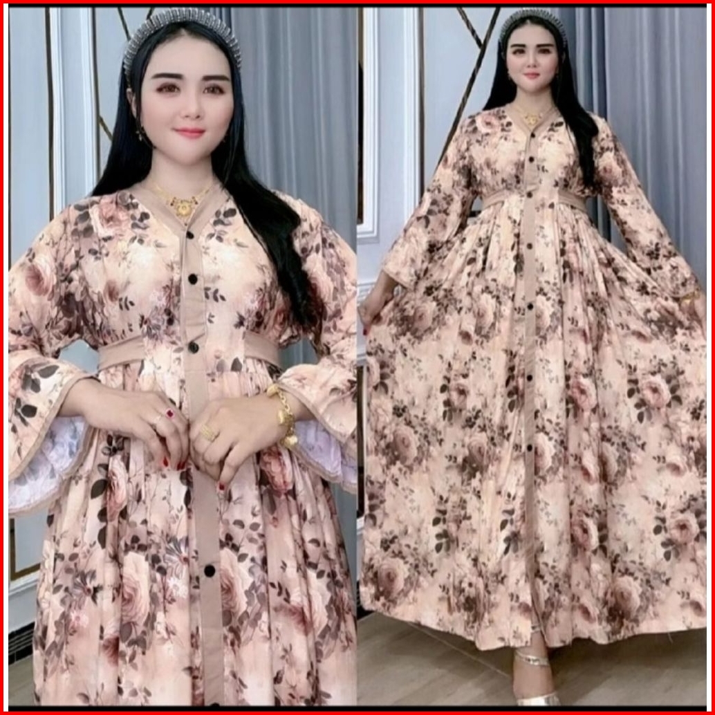 Gamis Wanita Dress Yutaka Ld 110 Pb 138 Lengan Trompet Bahan Katun Rayon Busui Friendly