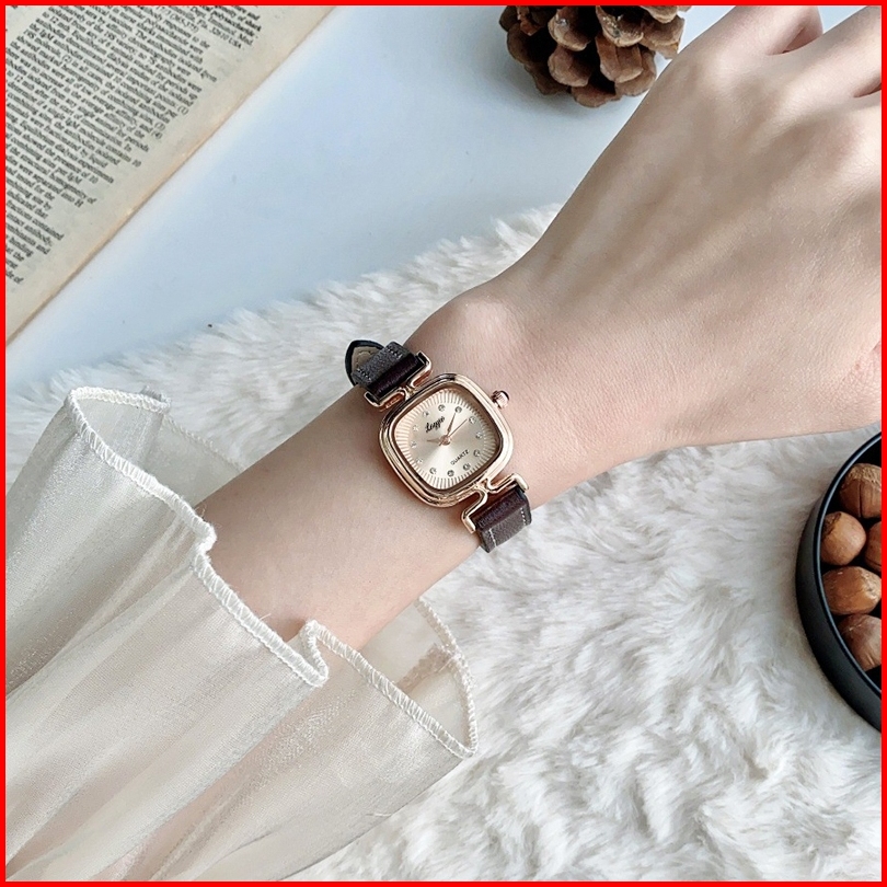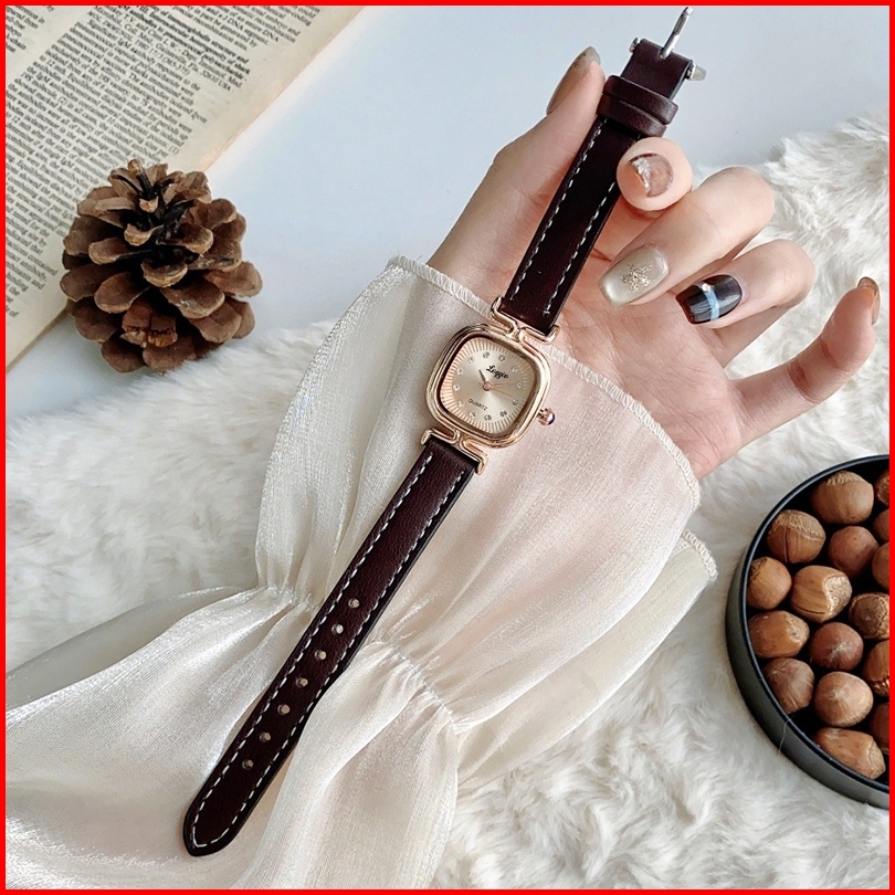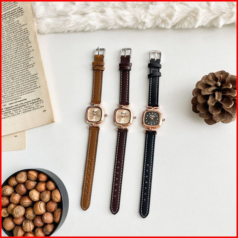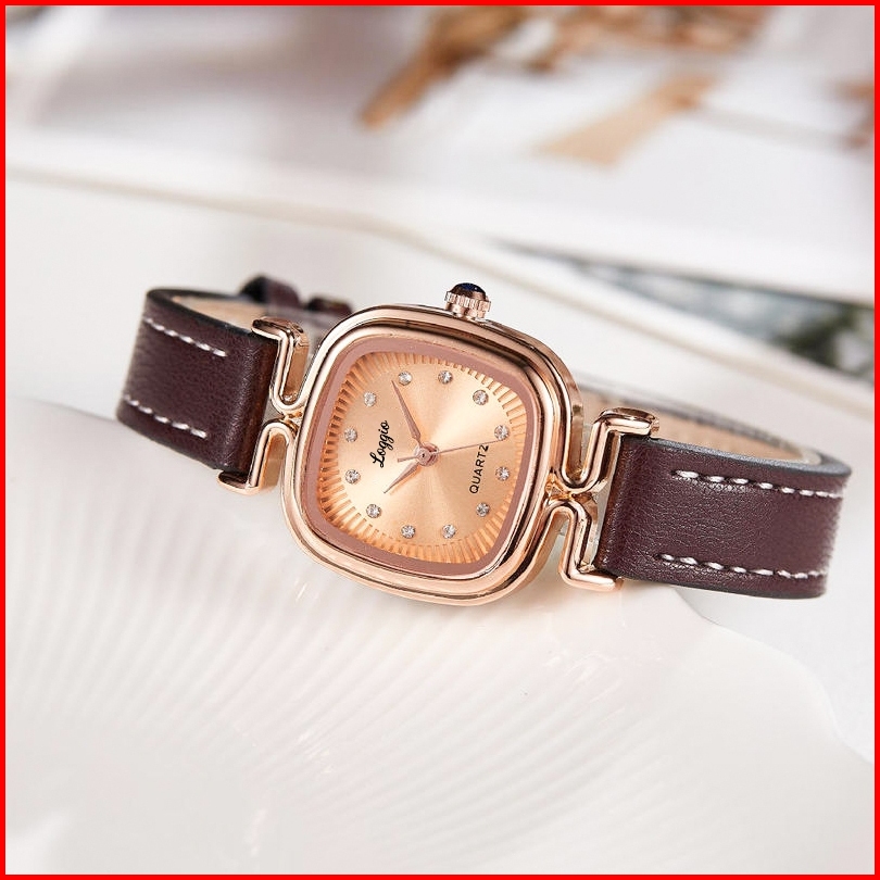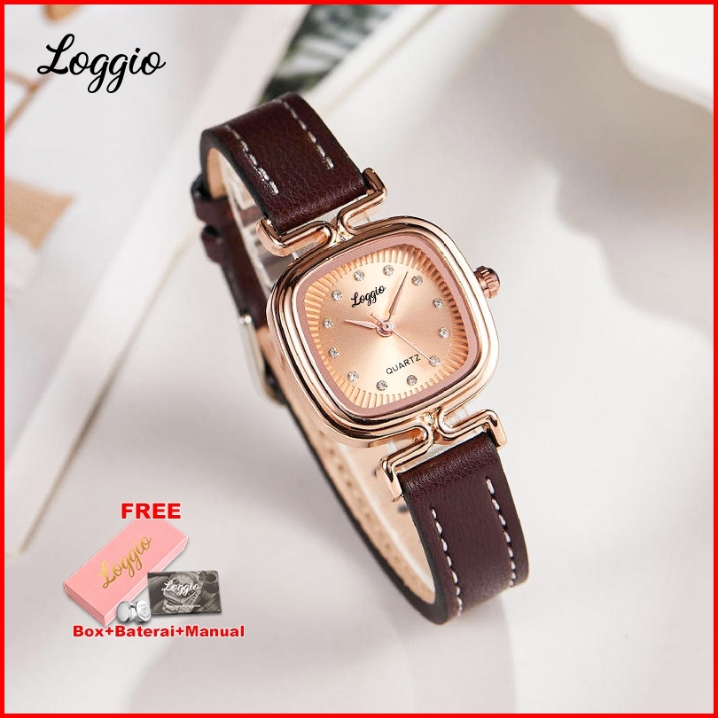 Loggio Jam Tangan Wanita Kulit Pointer Original Korea Retro Anggun Kuarsa Berlian Jam Tangan Cewek