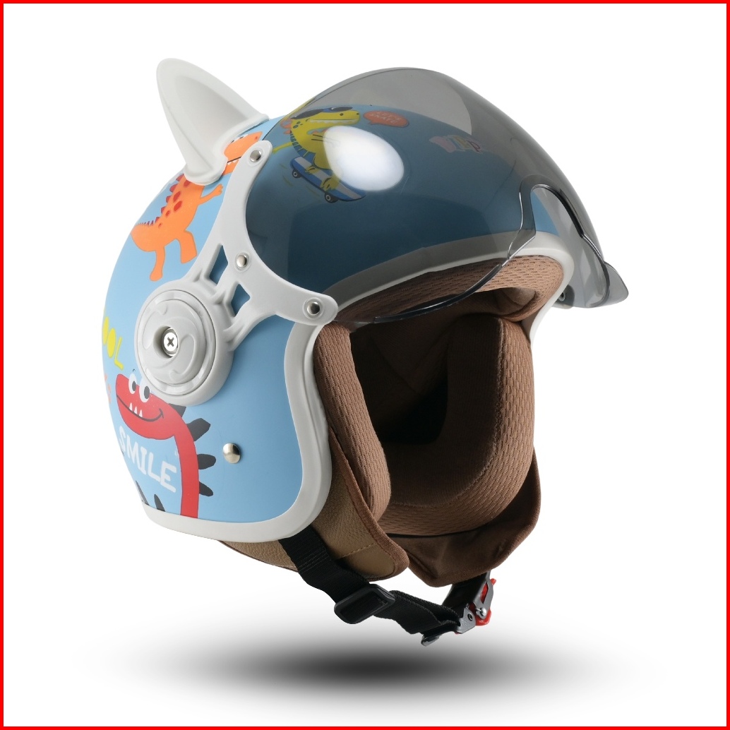 Helm Anak Lunar Kids Bagus Karakter Kartun Motif Pilot Lucu Pakai Kuping Kucing Sni