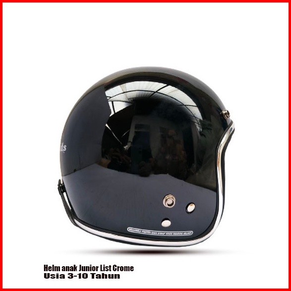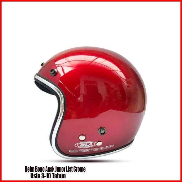 Helm Bogo Retro Anak Junior Usia 3-10 Tahun List Crome Kaca Datar Kaca Cembung Pet Topi Helm Sni