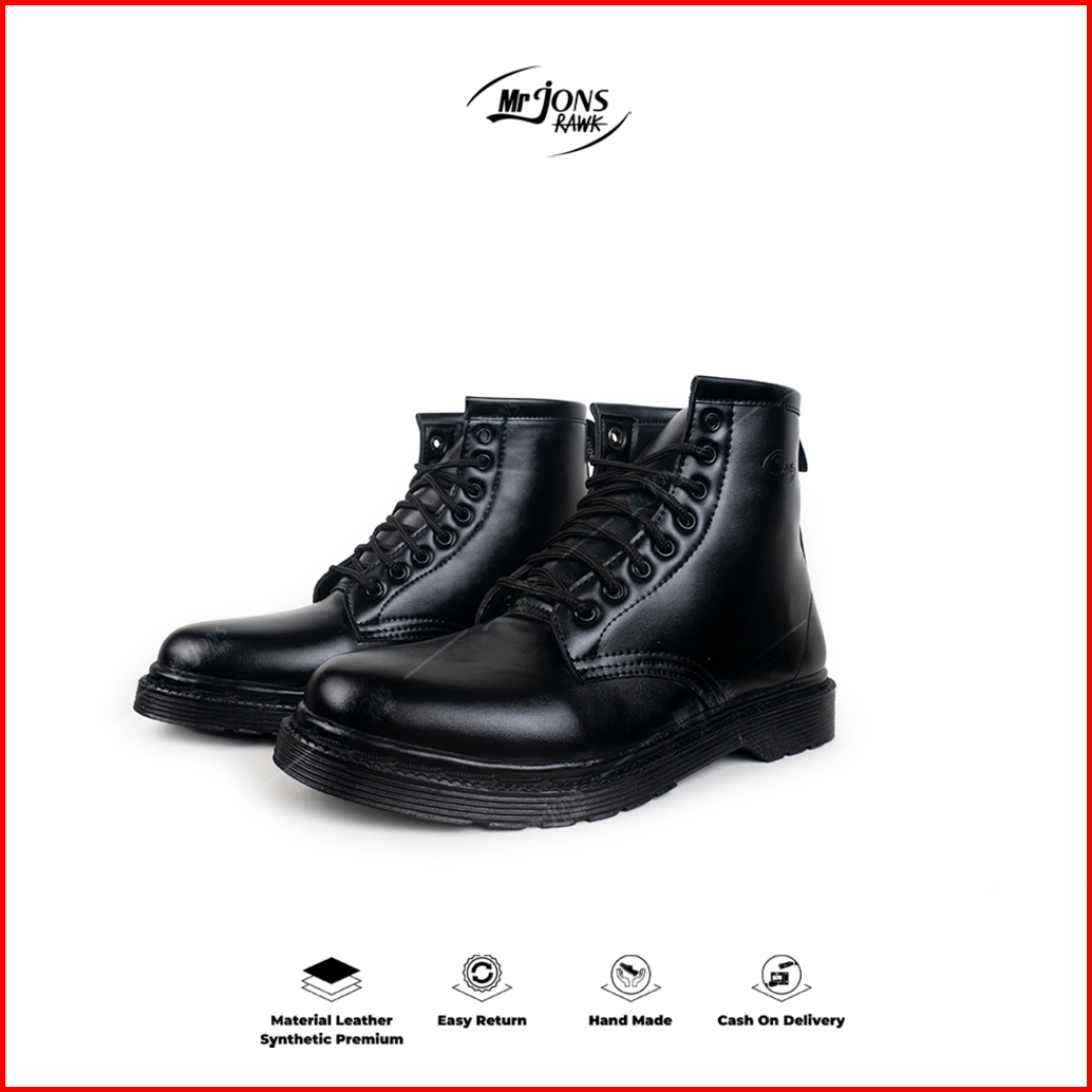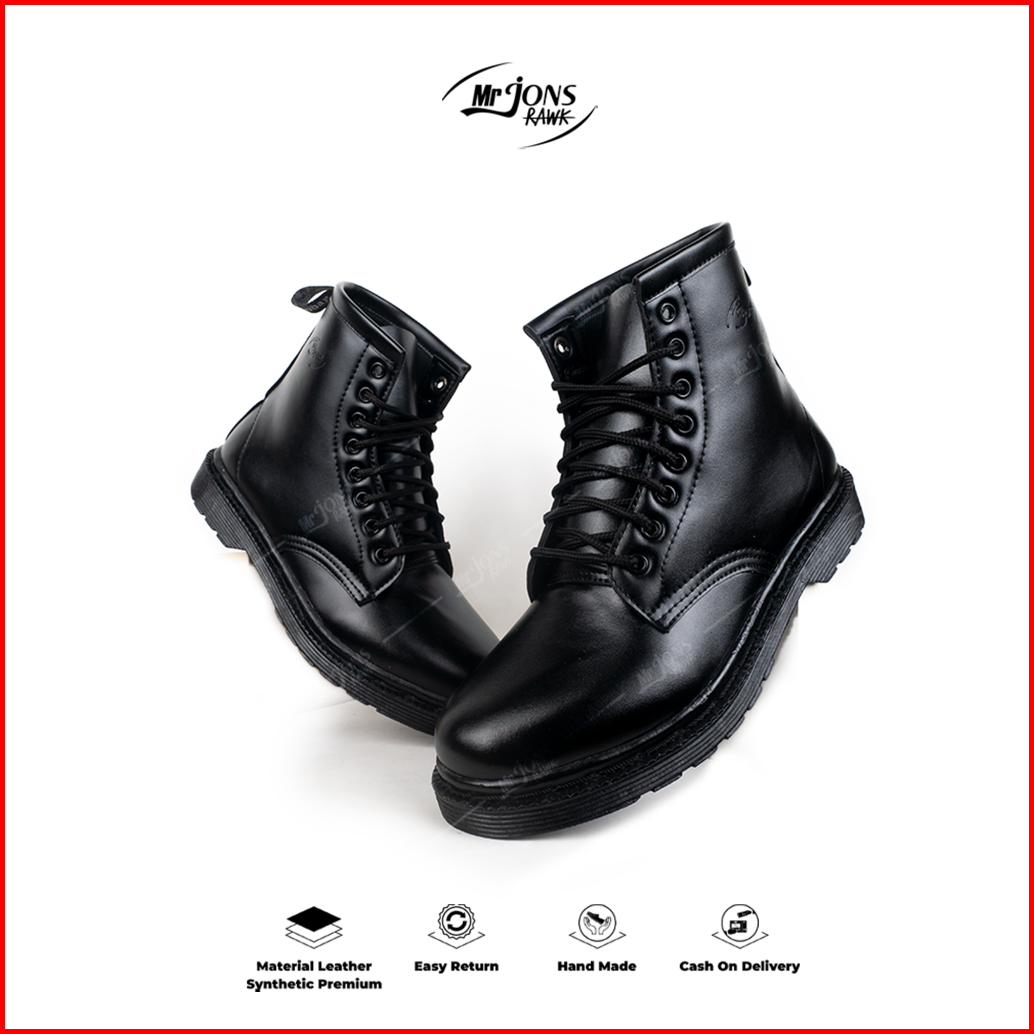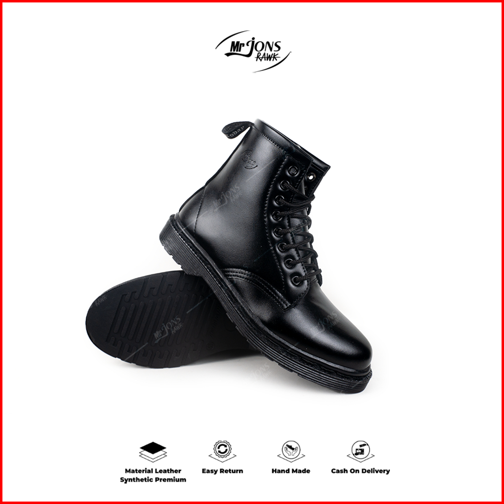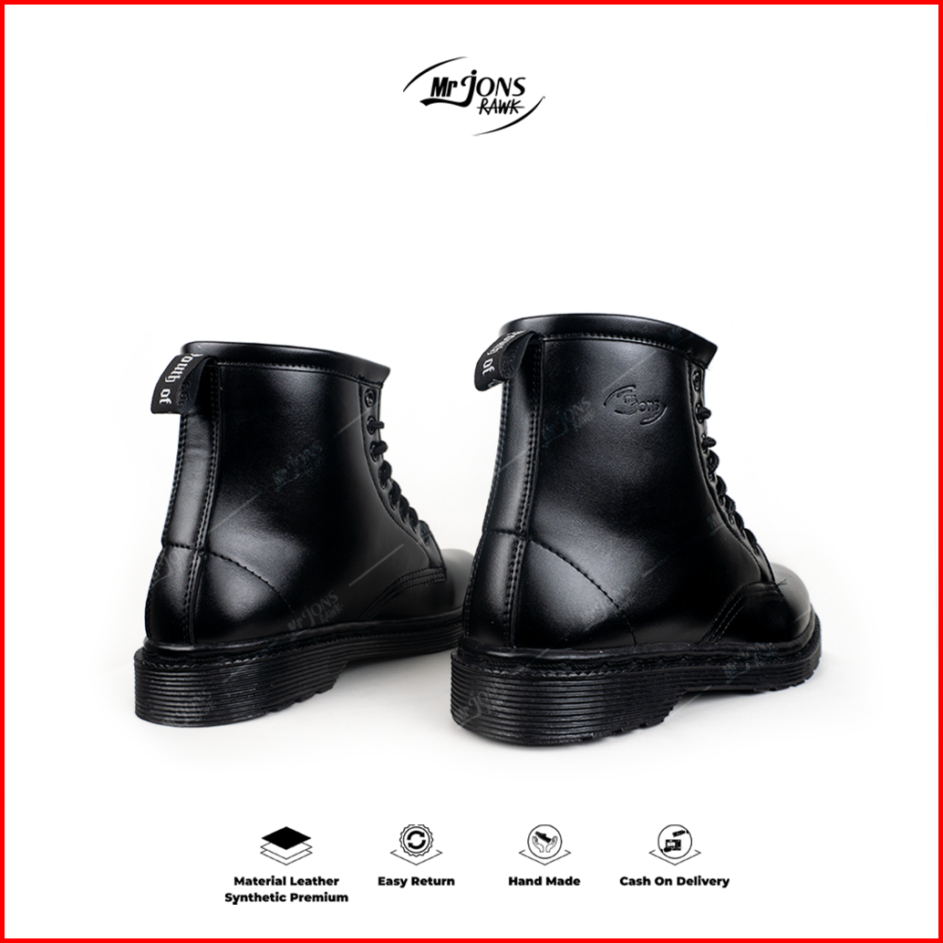 Mr.jonsrawk - Sepatu Boot Pria Wanita Model High Boot 8 Hole Jahitan Soll Hitam