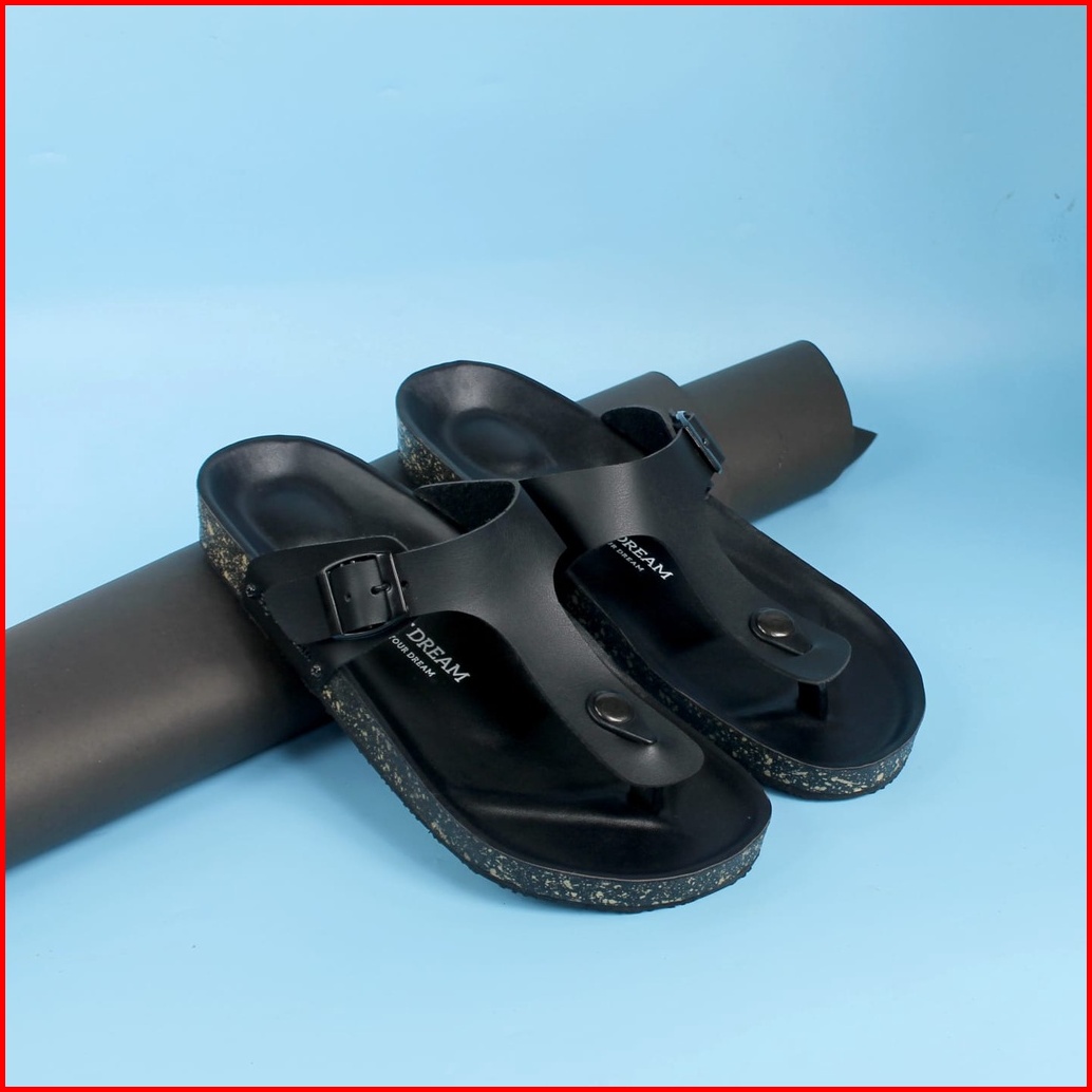 Ed Eight Dream - Aka Full Black Sandal Jepit Kulit Pria Distro Original Jepit Kekinian