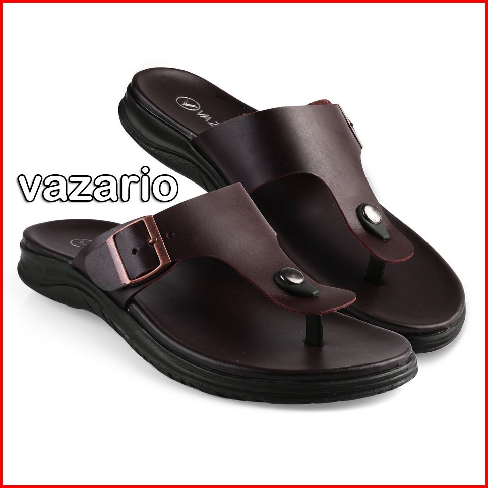 Vazario Sandal Kulit Pria Selop Kokop Brown Nyaman