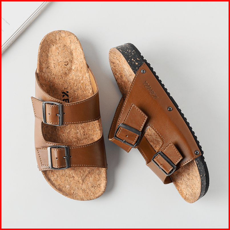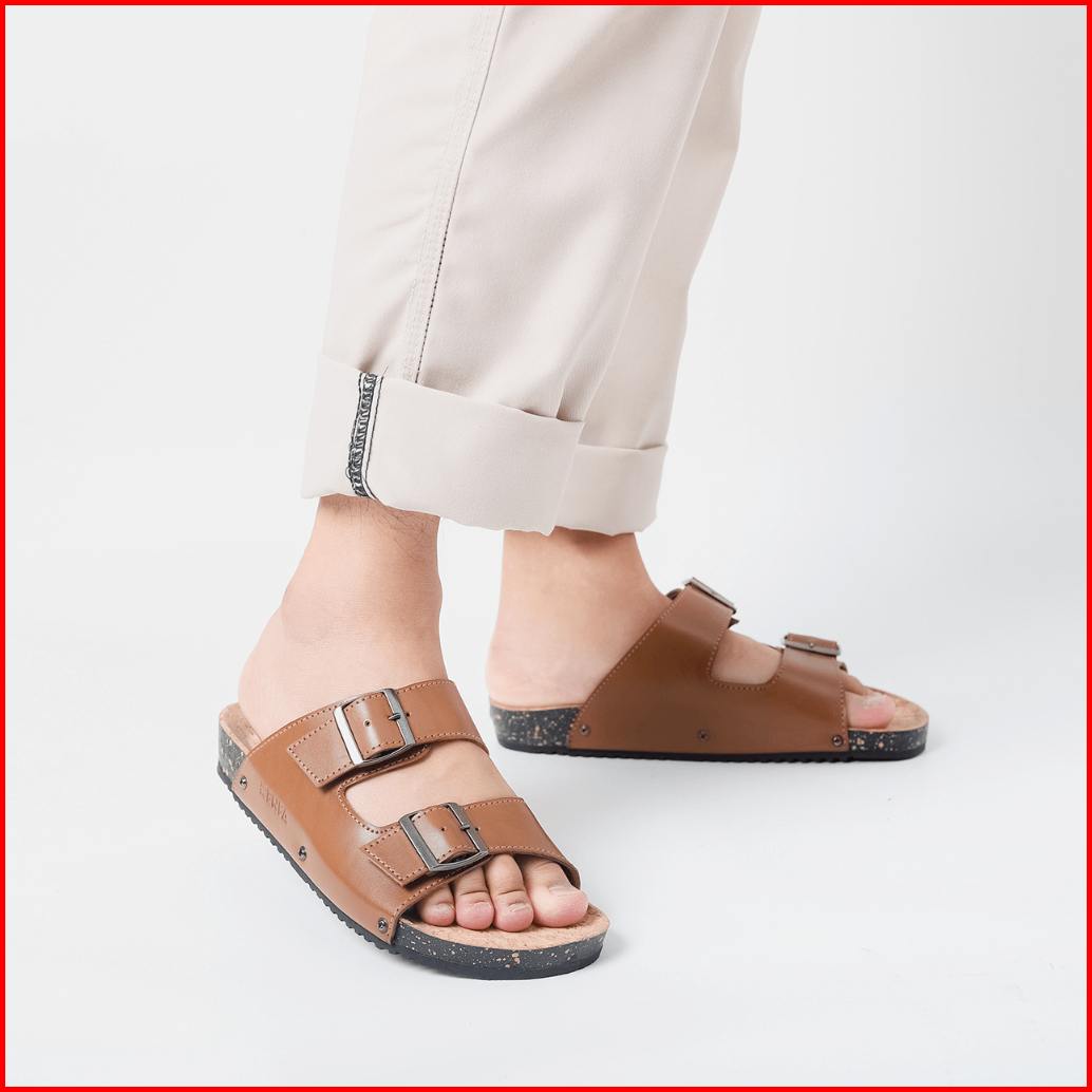 Kenfa - Nive Brown Sandal Pria Wanita Cowok Cewek Simple Formal Casual Slide Coklat Kulit Sintetis