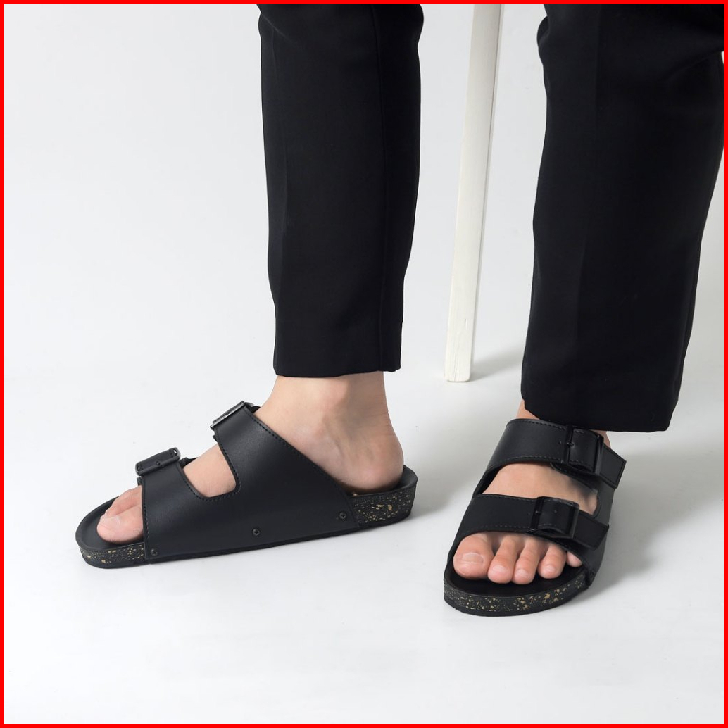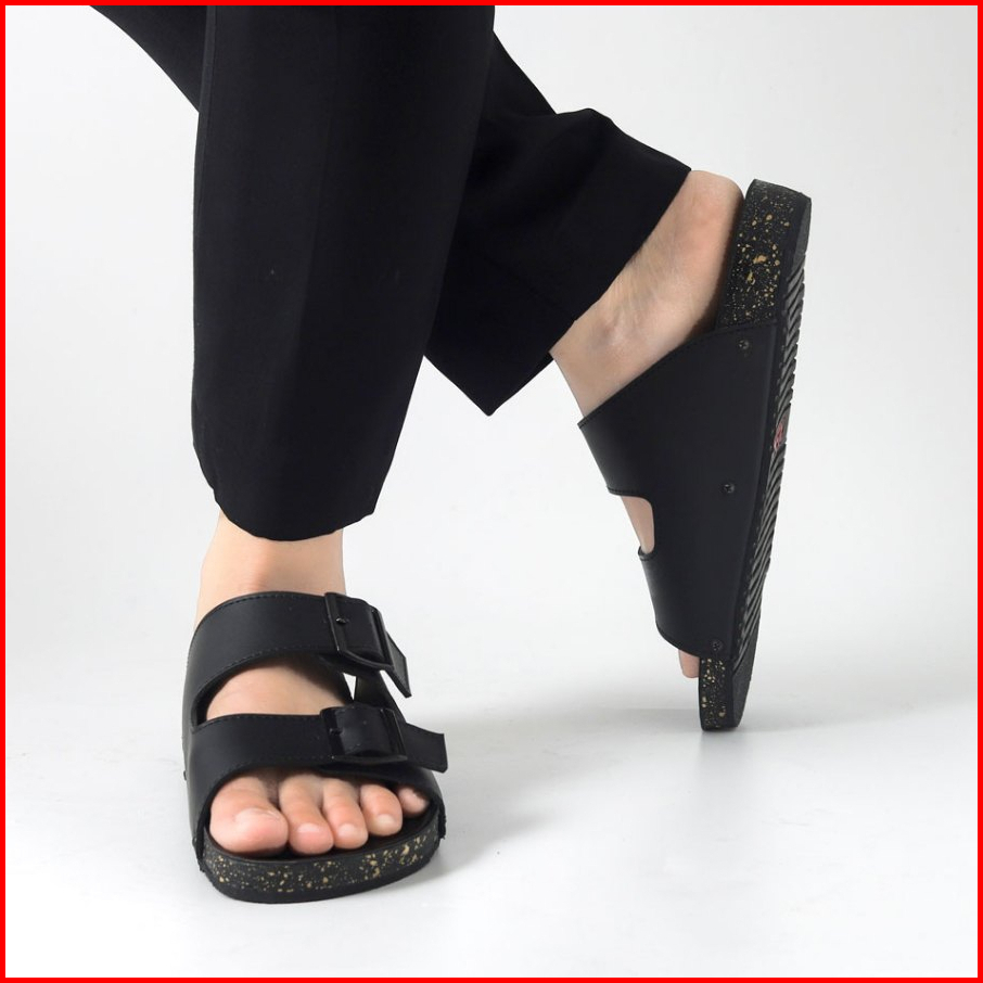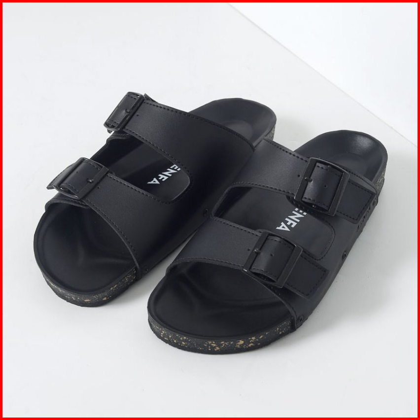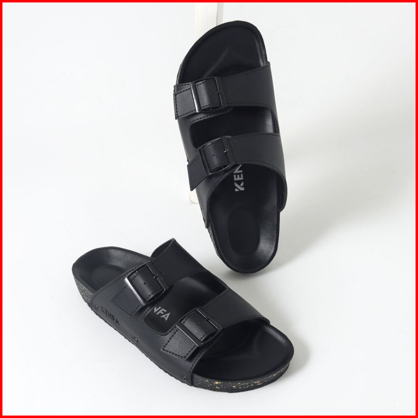 Kenfa - Nive Black Sandal Formal Casual Pria Wanita Kulit Slide Slop Distro Hitam Stylist Gesper