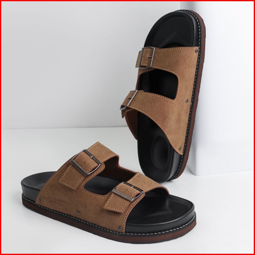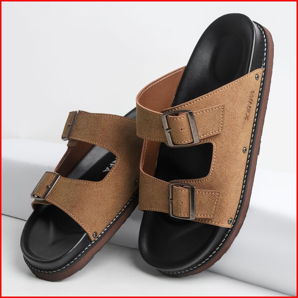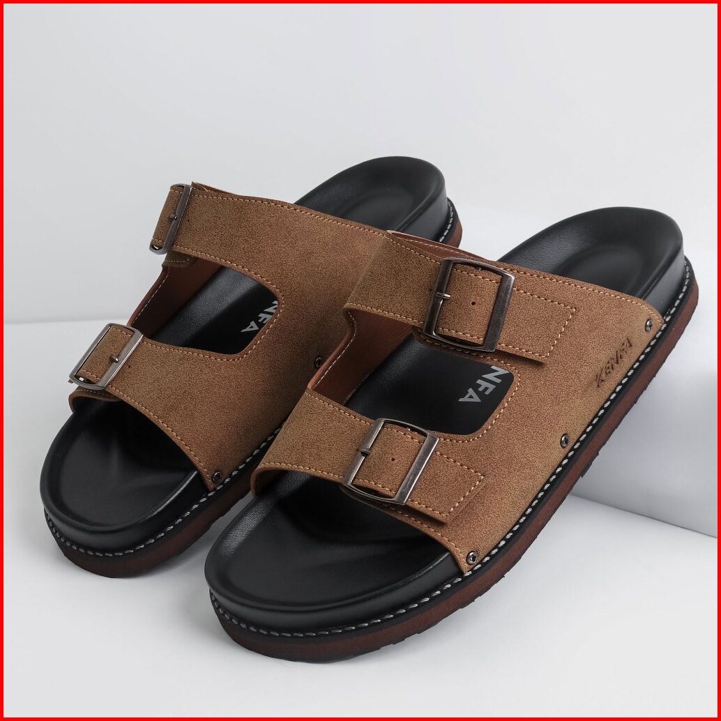 Kenfa - Nive Line Brown Sandal Formal Casual Pria Wanita Kulit Slide Slop Distro Stylist