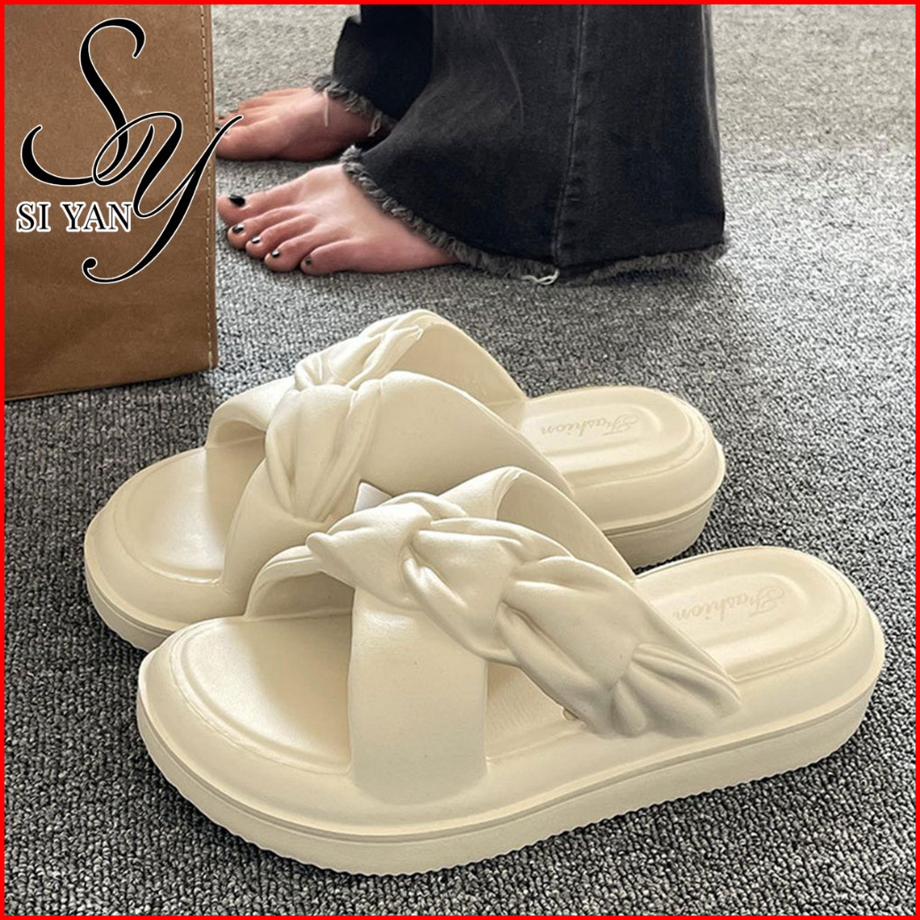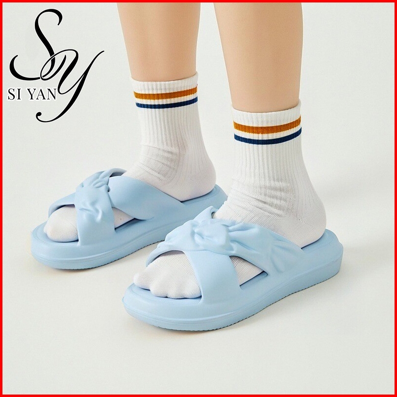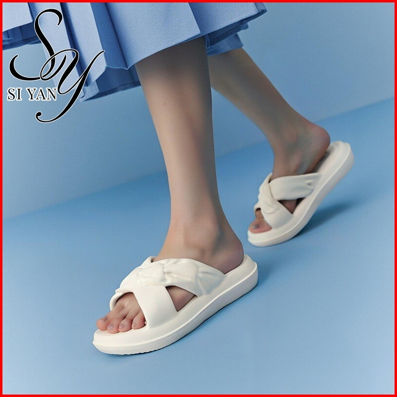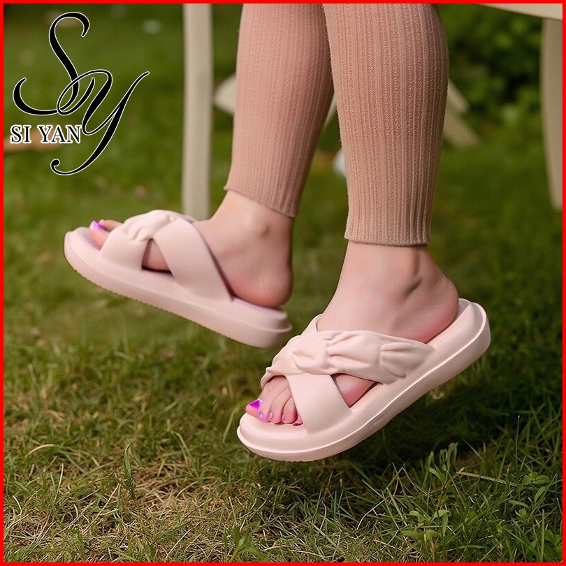 Si Yan 2025 Sandal Wanita Eva Jelly Selop Kekinian Sandal Flat Empuk Elastis Pria Slide Kasual