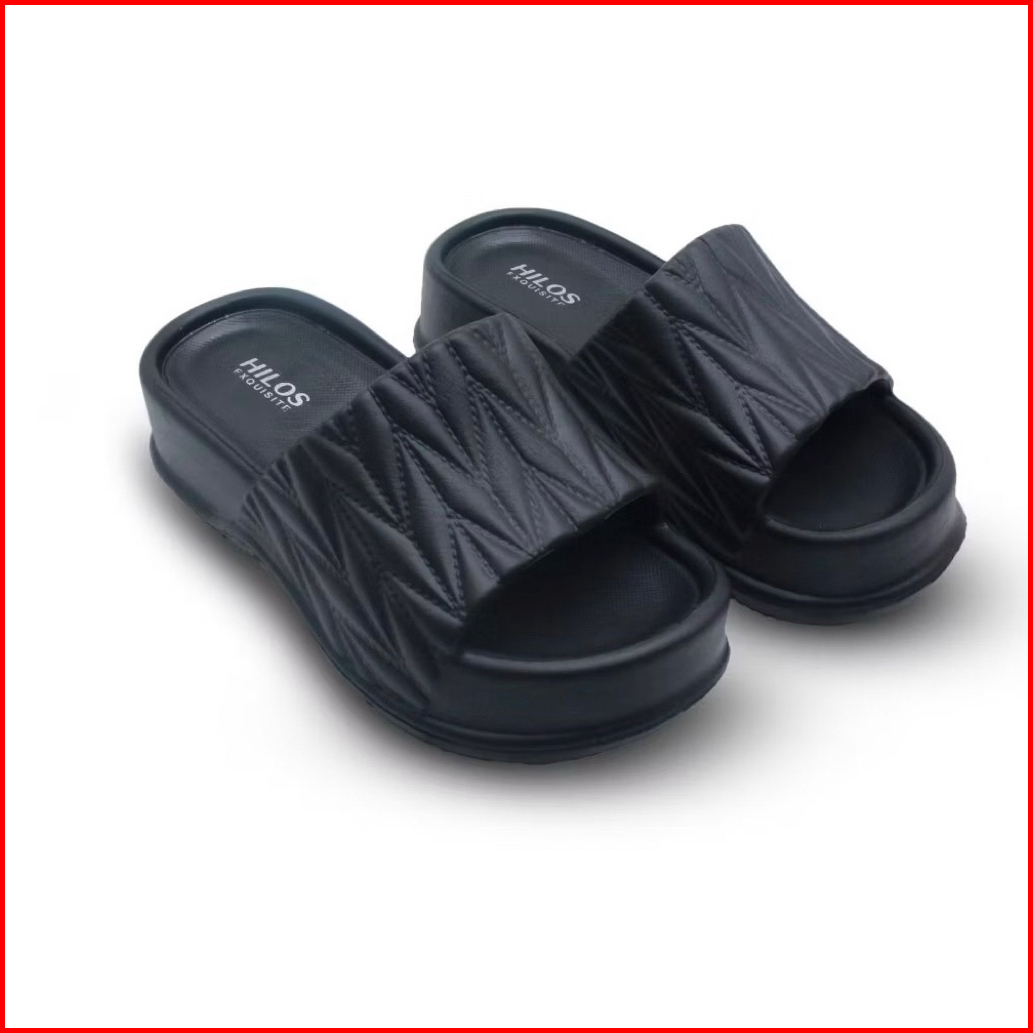 Hilos Sandal Selop Wanita Tinggi Wedges Hitam Anti Slip Nyaman Terbaru 2349h