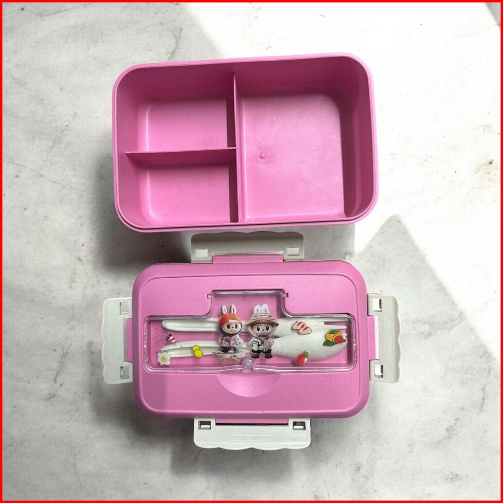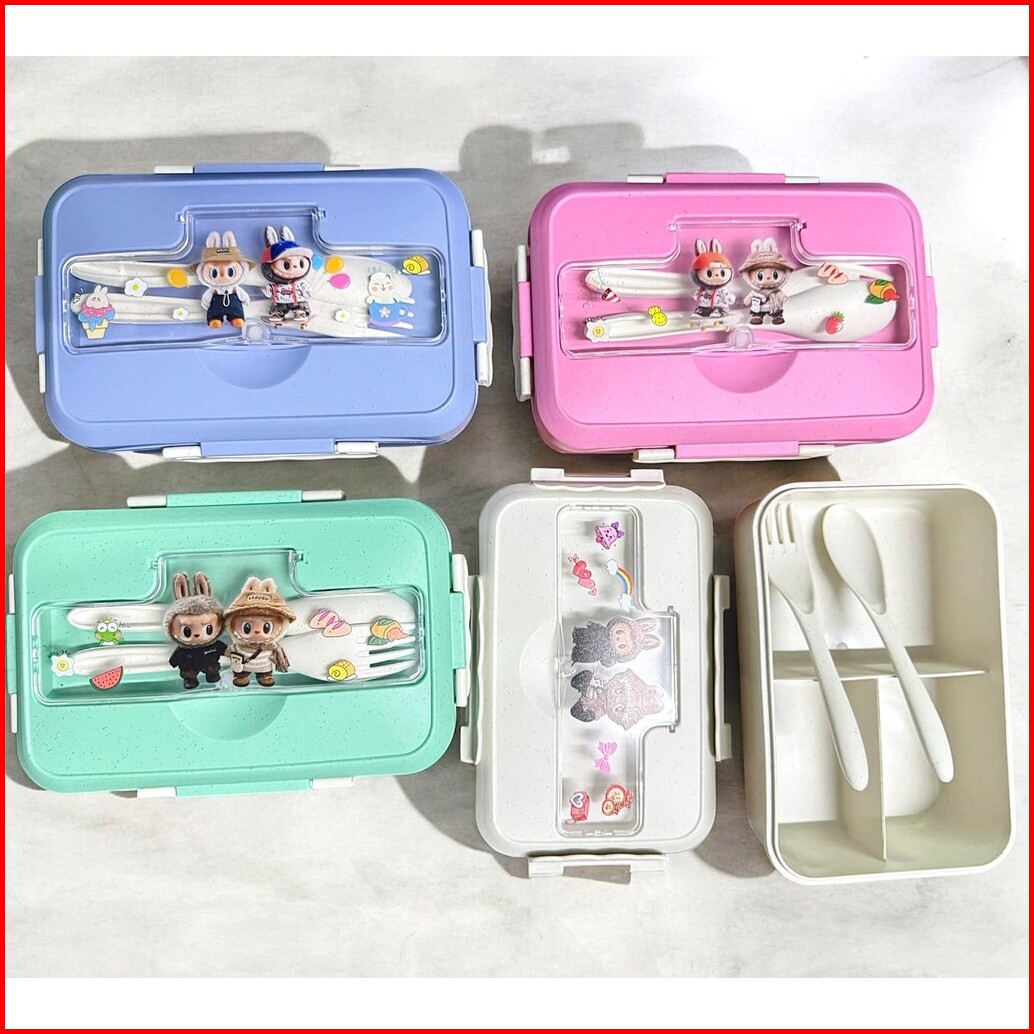 Lunch Box Set Labubu Free Sendok Garpu 1100ml Tempat Bekal