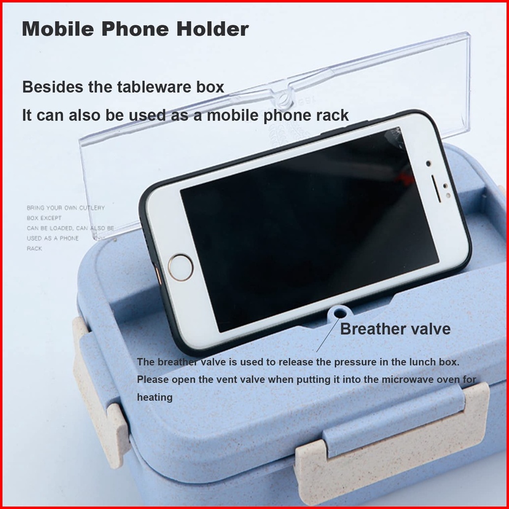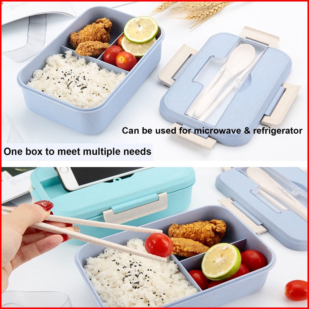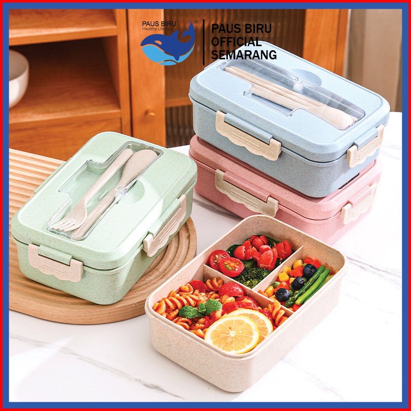 Paus Biru - Kotak Bekal Makan Siang Jerami Gandum 1000ml Lunch Box Set Alat Makan