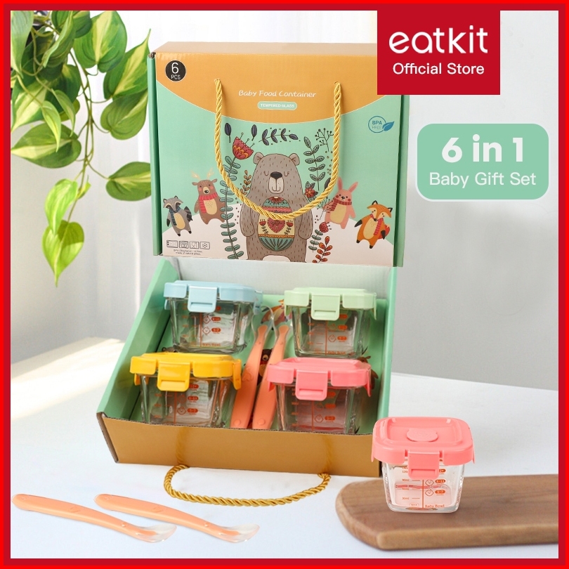 Eatkit Hampers Mpasi Kaca 6in1 Tempat Makan Bayi Sendok Silicon Baby Gift Food Container Bpa Free